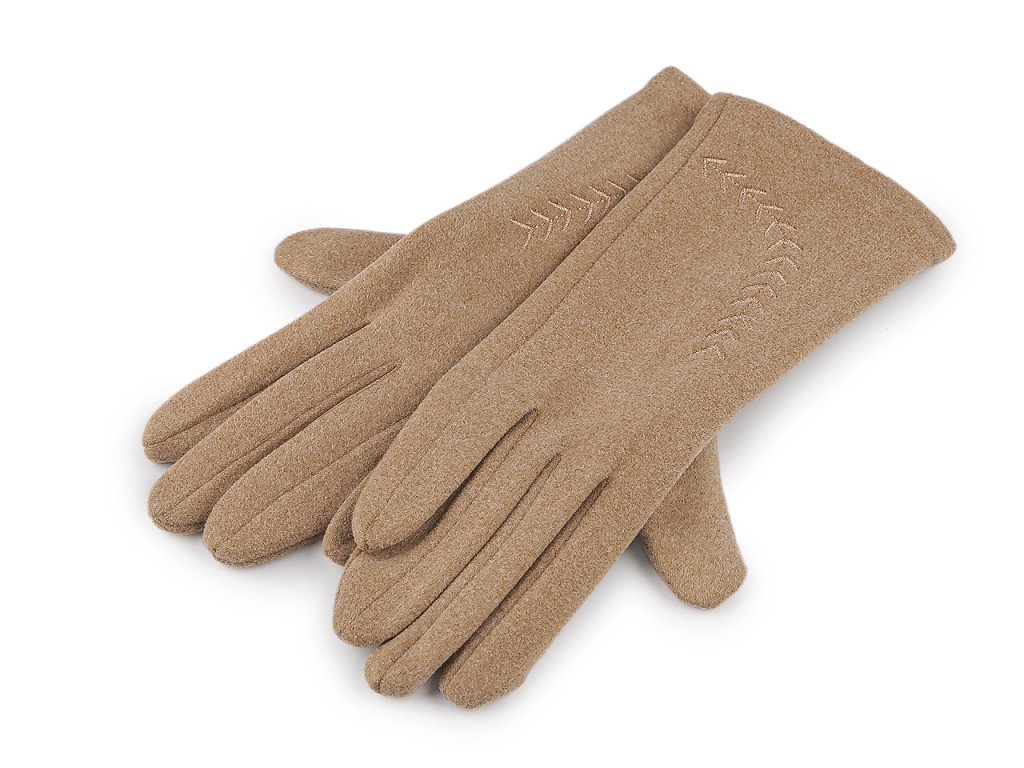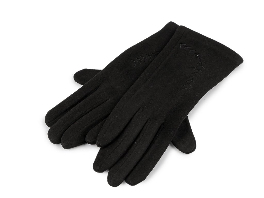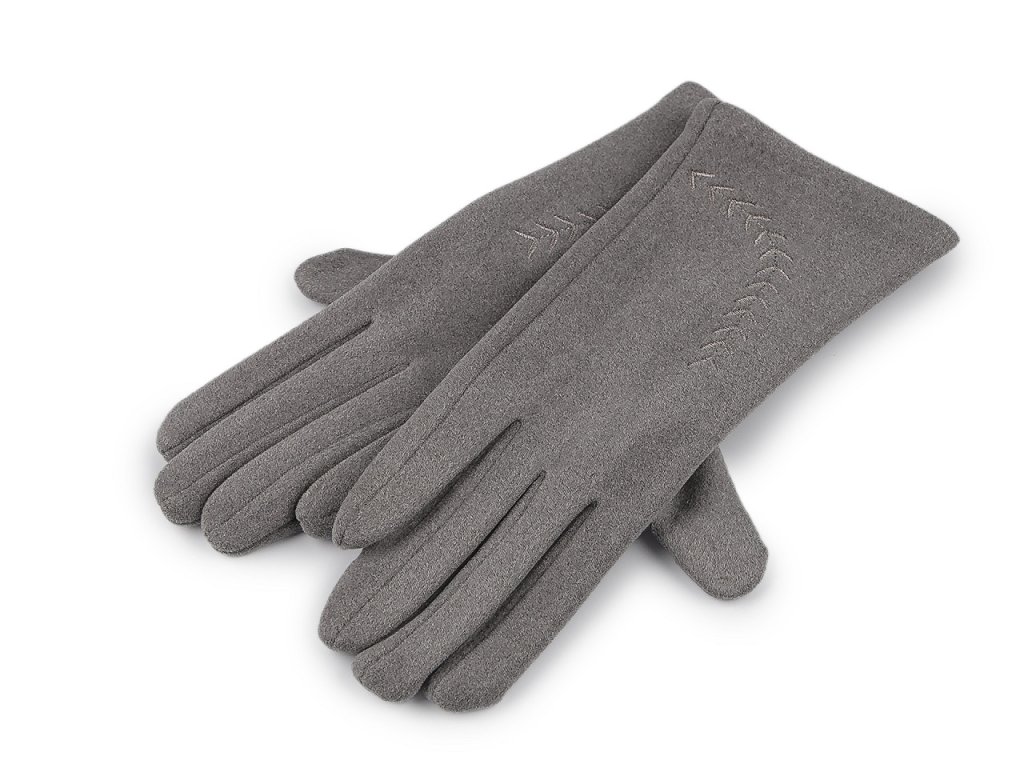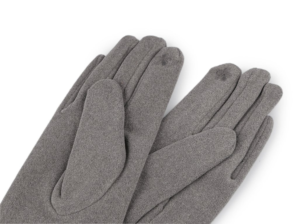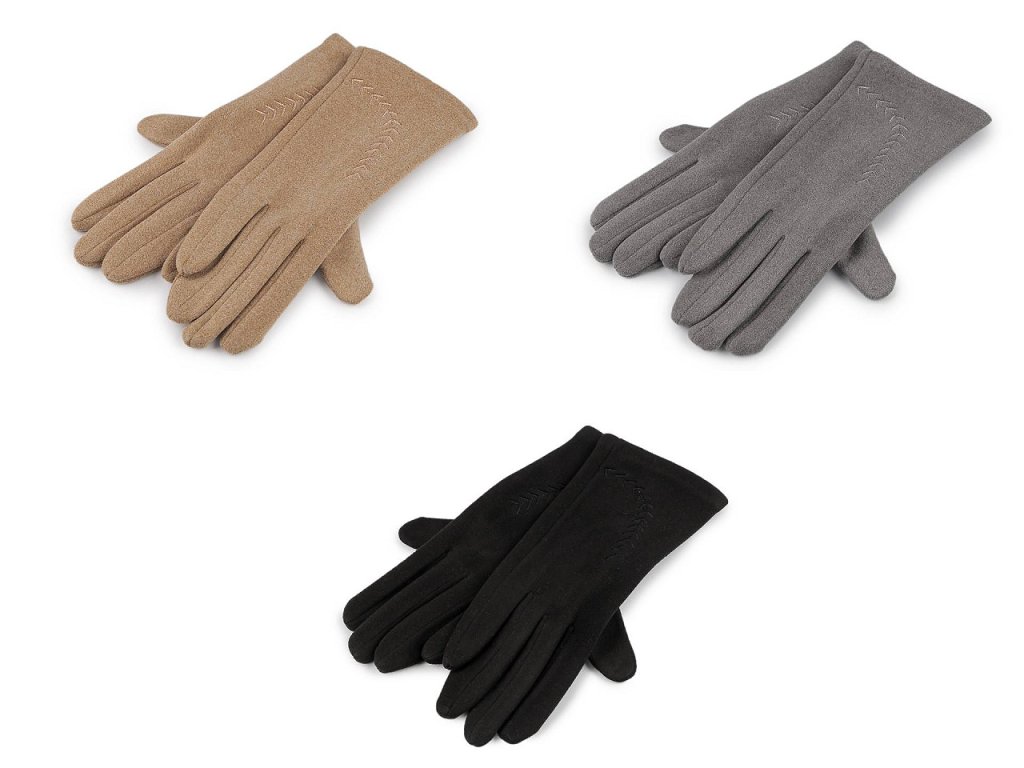 Elegantní dámské rukavice jsou na vrchní části ozdobené výšivkou větvičky. Výborně pruží, díky tomu se perfektně natahují. Materiál je velice příjemný na dotek, připomíná semiš, uvnitř mají rukavičky jemný plyš. Hodí se do mírné zimy nebo do chladnějšího podzimního počasí. Na ukazováčku pravé i levé ruky je vyšitý květ, díky kterému můžete ovládat dotykové přístroje - mobil, tablet, bankomat apod. Tyto rukavice vám poskytnou styl a pohodlí na každý den. Šířka je měřená na volně položených rukavicích uprostřed (bez palce).- Šířka: 8,5 cm