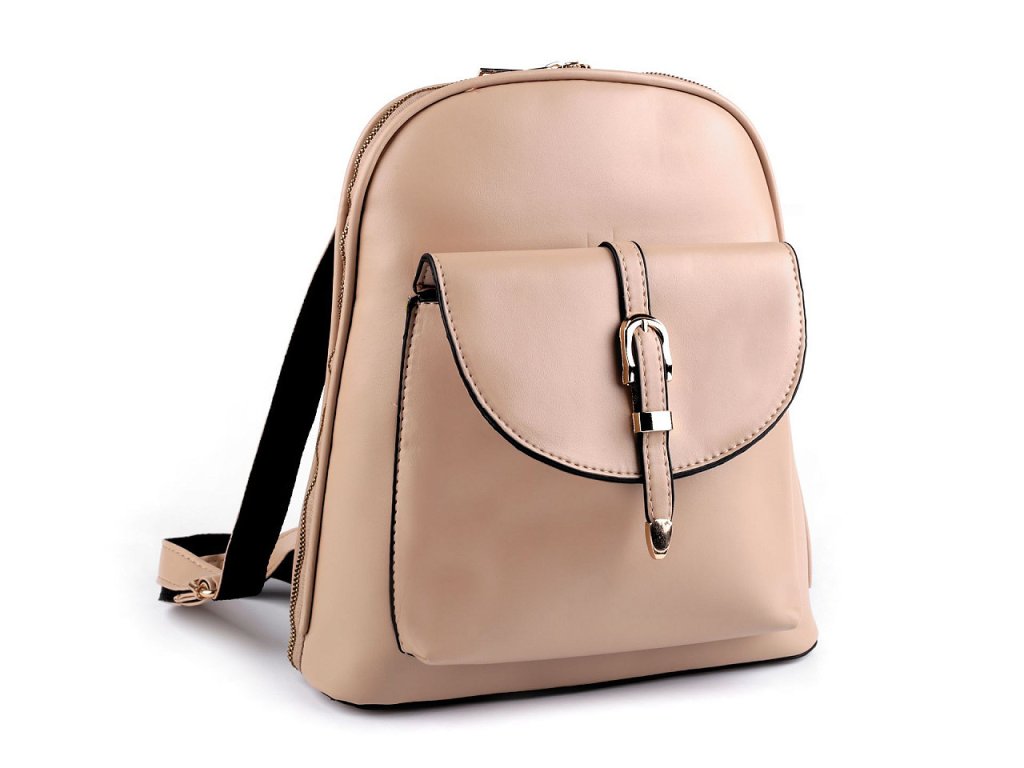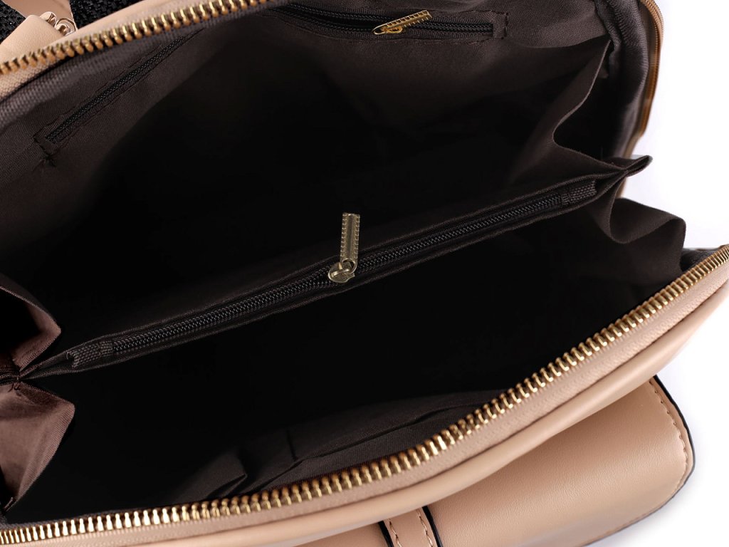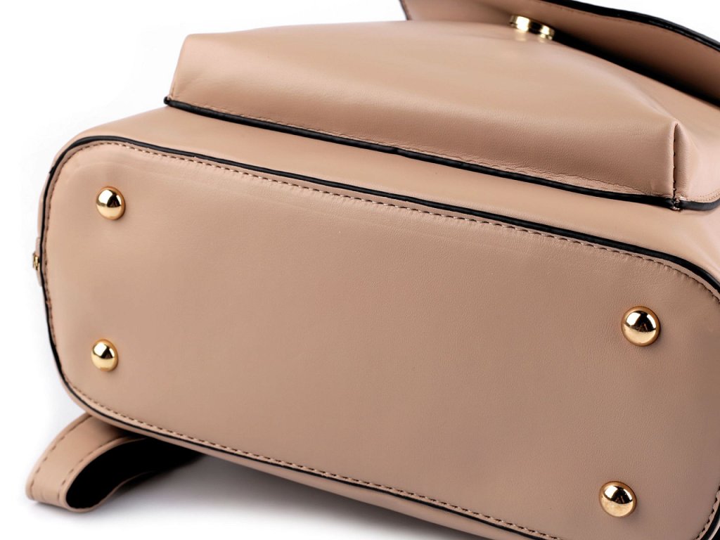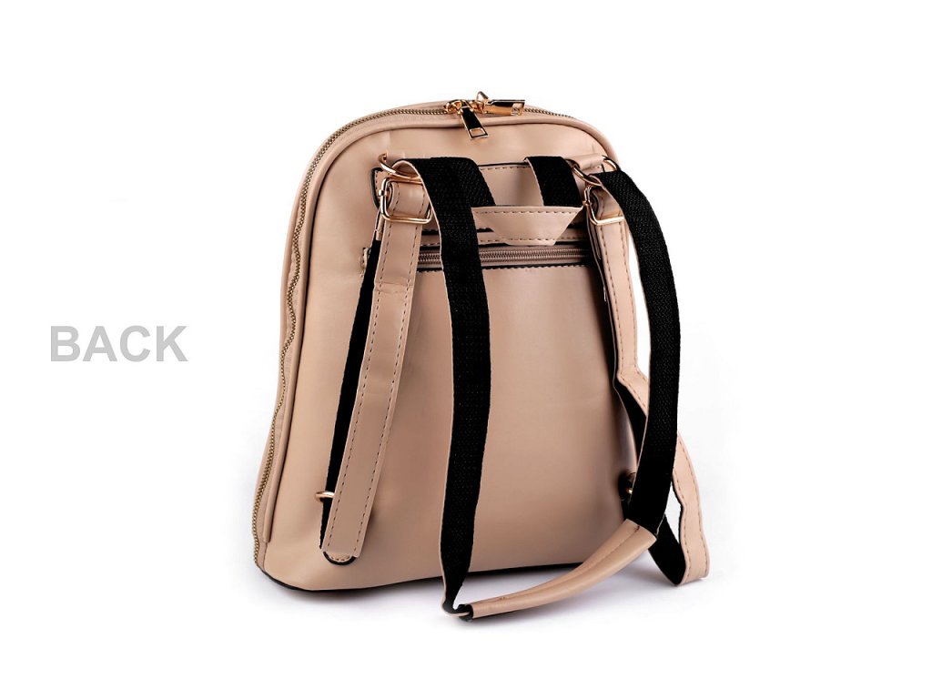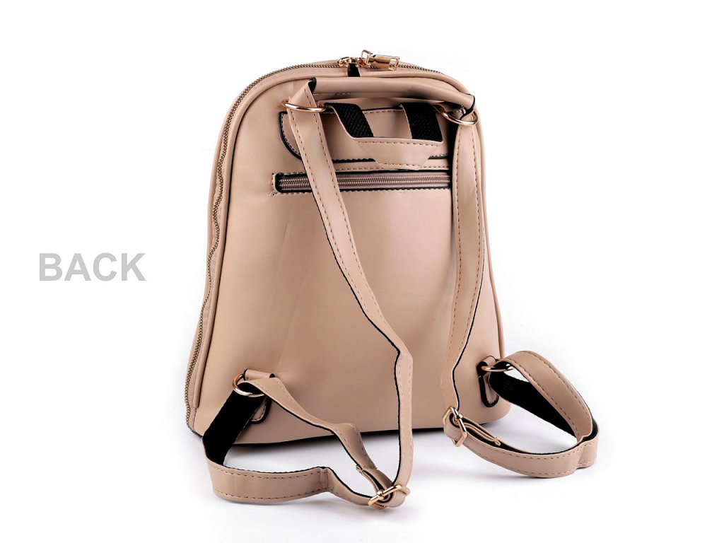 Stylový městský batoh, který lehce přeměníte na crossbody kabelku skvěle doplní váš outfit. Díky syntetického materiálu, který vypadá jako kůže, má batoh punc kvality i vkusné originality. Je ideální na nošení do města, kanceláře i na výlety. Hlavní kapsa je na zip, je velice prostorná. Je rozdělená přepážkou na dva oddíly, v přepážce je umístěná kapsa na zip. Nechybí ani vnitřní kapsička na zip na drobnosti či mobil a kapsa na uložení plochých předmětů. Na přední straně batohu je kapsa, která se zapíná na klopu s magnetickým zapínáním. Přezka je pouze ozdobný díl. Na zadní straně batohu je umístěná malá plochá kapsa na zip. Ucho je pevné, krátké do ruky či na pověšení. Popruhy jsou dostatečně dlouhé s možností regulace pro pohodlné užívání během celého dne. Jsou podšité látkou. Nahoře jsou popruhy v kovových průvlecích, které slouží na protáhnutí popruhů na nošení křížem jako kabelka. Dno batohu je opatřené kovovými hřeby, které jej chrání před poškozením.- Rozměry (ŠxVxH): 27 x 31 x 11 cm
