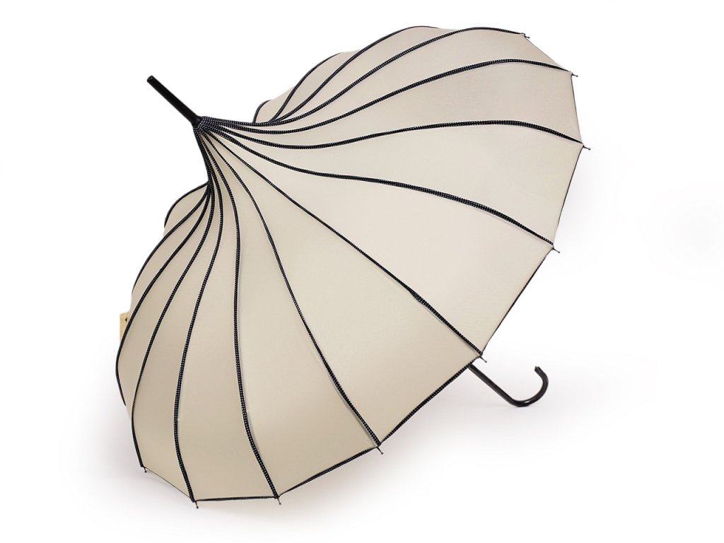 Designový deštník pagoda je díky svému tvaru inspirovanému tradičními pagodami skvělým módním doplňkem. Spolehlivě vás ochrání v nepříznivém počasí. Konstrukce z kovového drátu tvoří 16 polí. Díky ní je deštník velice pevný, neohne se ani za největšího nečasu. Klasickou tyč má zakončenou pevnou rukojetí. Hloubka deštníku je 18 cm + špice nahoru.- Rukojeť: eko kůže