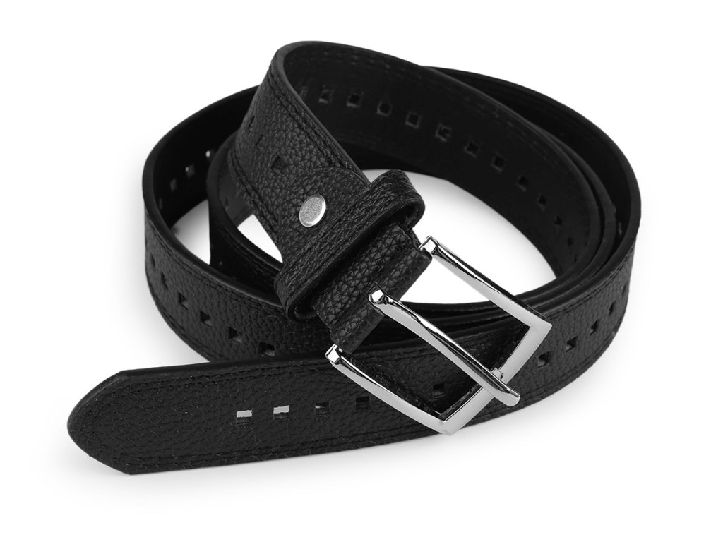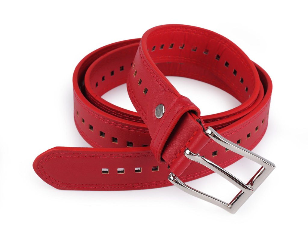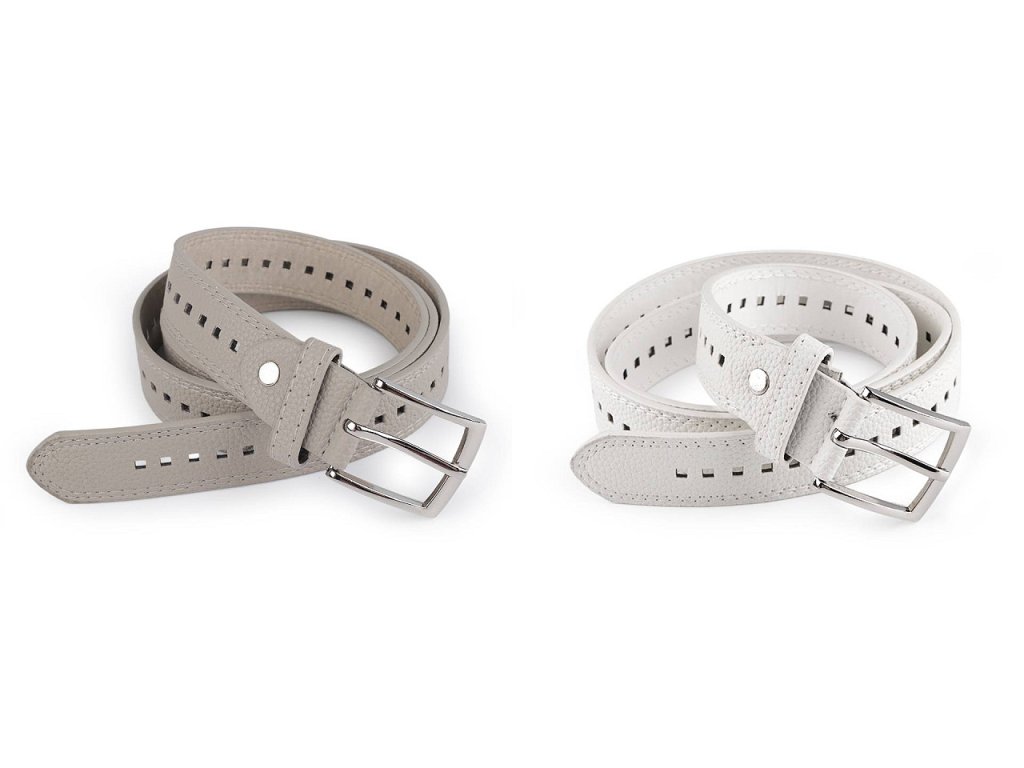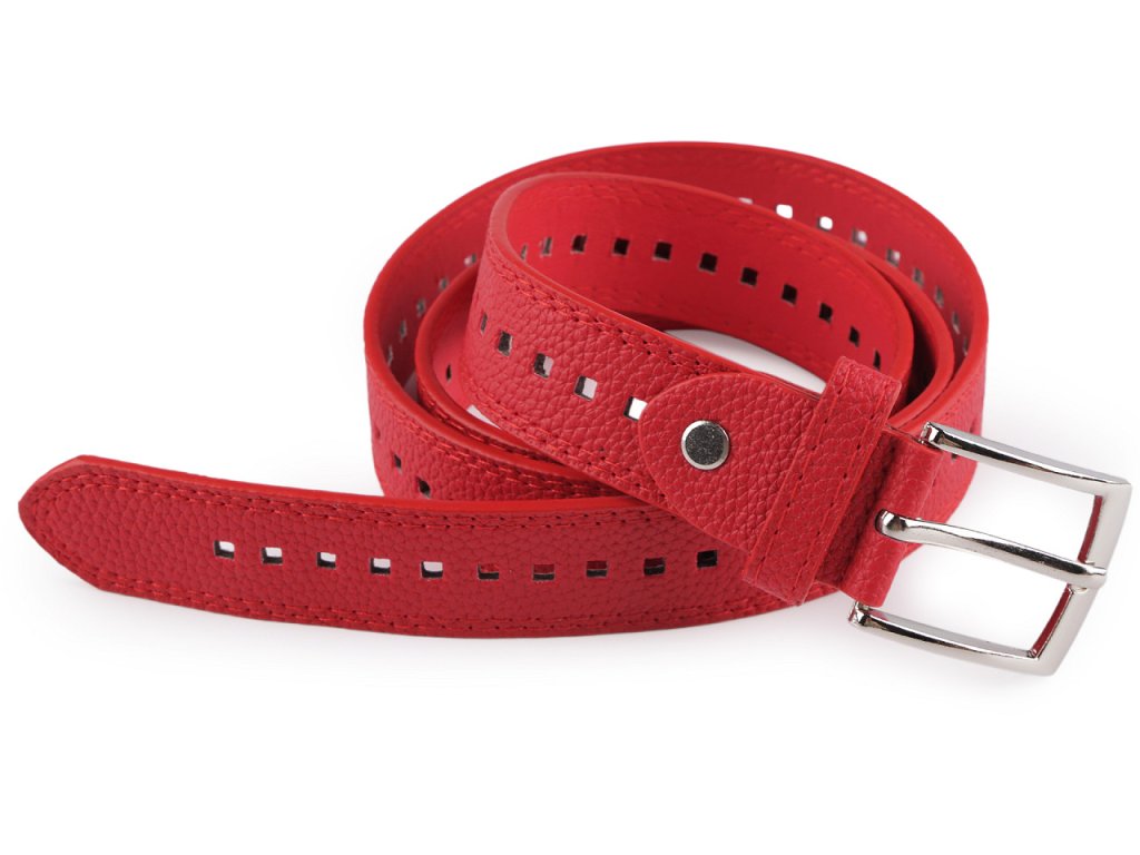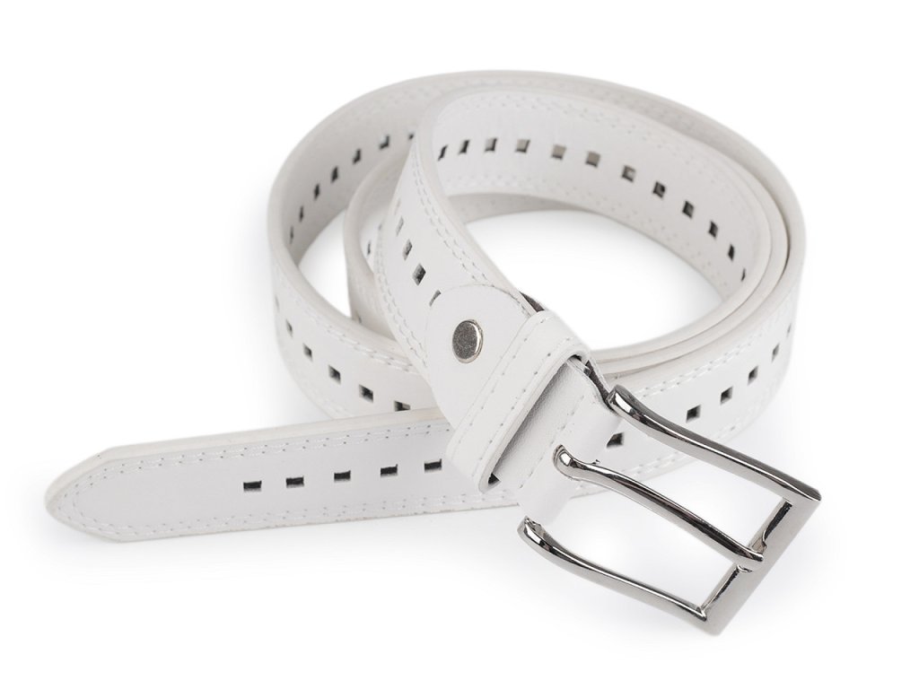 Dámský pásek s oky po celé délce se řadí k nadčasovým modelům. Je vyrobený z eko kůže, některé pásky jsou čistě hladké, některé mají na povrchu efektní vzor kůže. Mohou jej nosit i dívky, protože obvod pásku si lehce přizpůsobí svému pasu. Díky jednoduchému designu se dá dobře kombinovat se širokou škálou oděvů. Má klasickou kovovou sponu na zapnutí a štepování po obvodu. Maximální obvod zapnutí je 107 cm.- Šířka: 2,8 cm