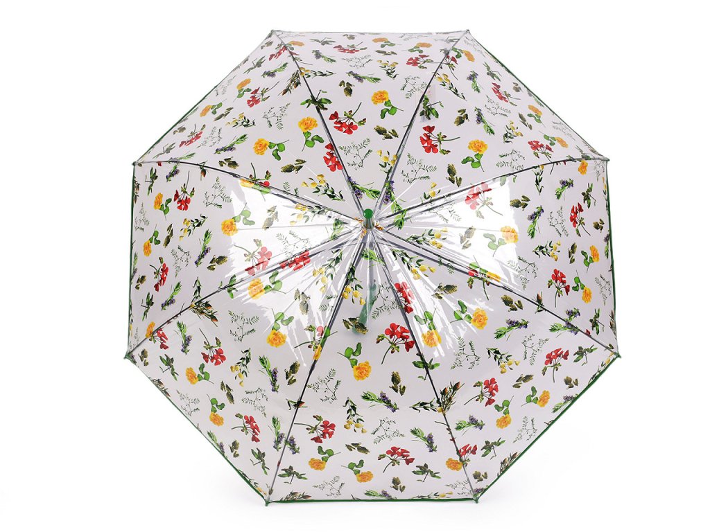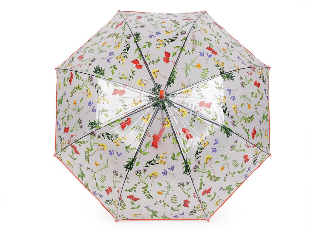 Dámský / dívčí průhledný vystřelovací deštník luční květy