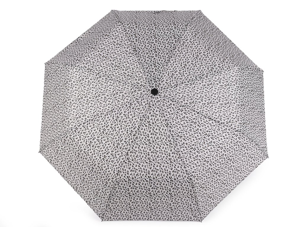 Plně automatický skládací deštník je vyrobený z kvalitního materiálu. Na potahu deštníku je leopardí motiv. Deštník má vystřelovací/sestřelovací mechanizmus. Rozevře i zavře se stisknutím tlačítka se šipkou nahoru nebo dolů. Rukojeť deštníku je plastová, opatřená poutkem. Konstrukce deštníku se skládá z osmi polí. Součástí deštníku je ochranný obal. Hloubka deštníku je 21 cm. Celková délka je 57 cm. Délka složeného deštníku je 29 cm.- Rukojeť: plastová