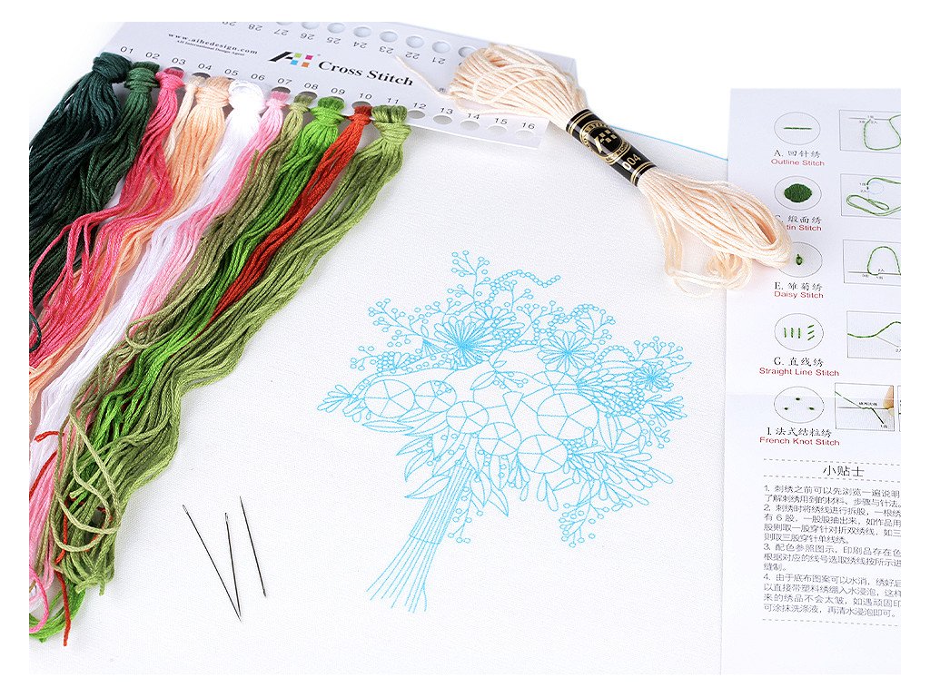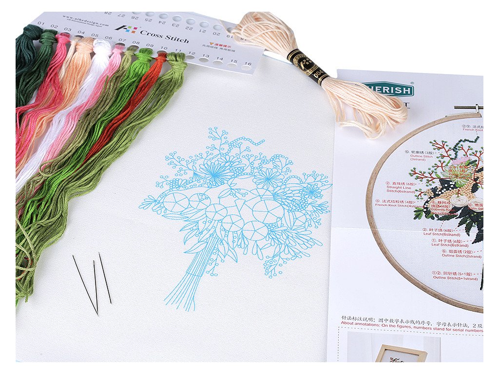 Dárková sada na vyšívání s předtištěným motivem kytice