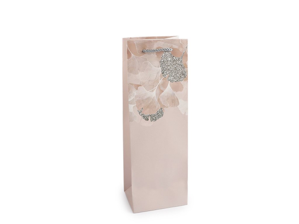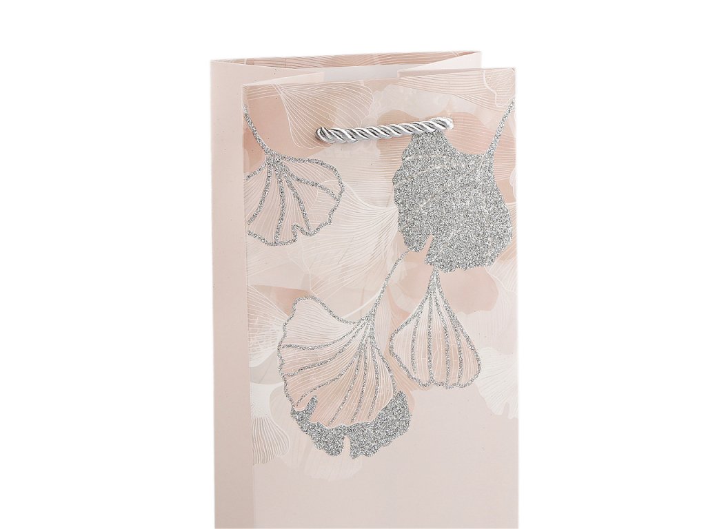 Sada elegantních dárkových tašek s rostlinnými motivy je určená na zabalení lahví a jiných podlouhlých dárků. Tašky jsou dostatečně vysoké, ať už se rozhodnete pro dárek s alkoholem nebo s domácí limonádou, tašky vám ušetří čas při balení. Jsou vyrobené z kvalitního pevného křídového papíru. Přední strana je ozdobená potiskem s glitrovými detaily, zadní strana má barevný potisk, boky jsou jednobarevné. Ucha tašky jsou z kroucené saténové šňůry.- Rozměry: 12 x 35 x 10 cm