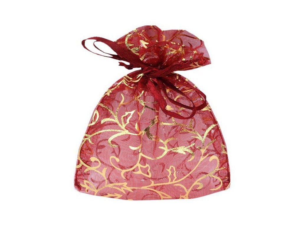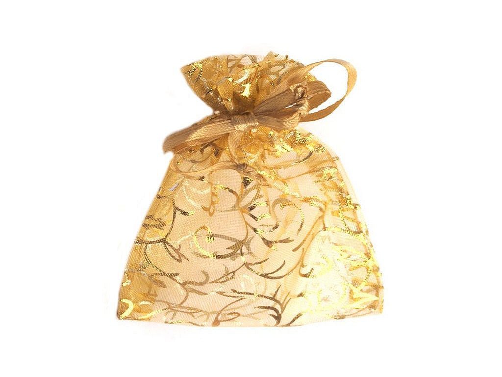 Dárkový pytlíček o velikosti cca 70 x 100 mm z kvalitního materiálu. Pytlíky jsou dodávány v balení po 10 kusech. Můžete do něj zabalit malé dárky pro své blízké na narozeniny i na Vánoce. Bude perfektní náhradou klasického papíru. Pytlík se stahuje stuhou a je ozdoben zlatými ornamenty. Rozdíl v rozměrech může být +/- 1 cm.- Šíře: 7 cm