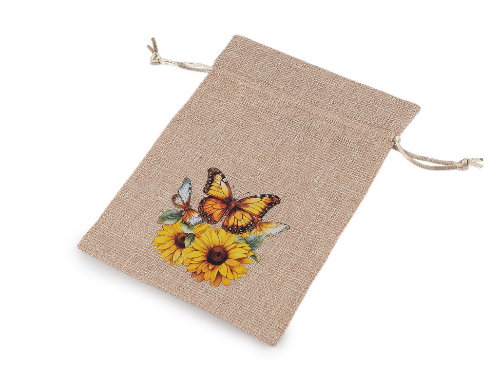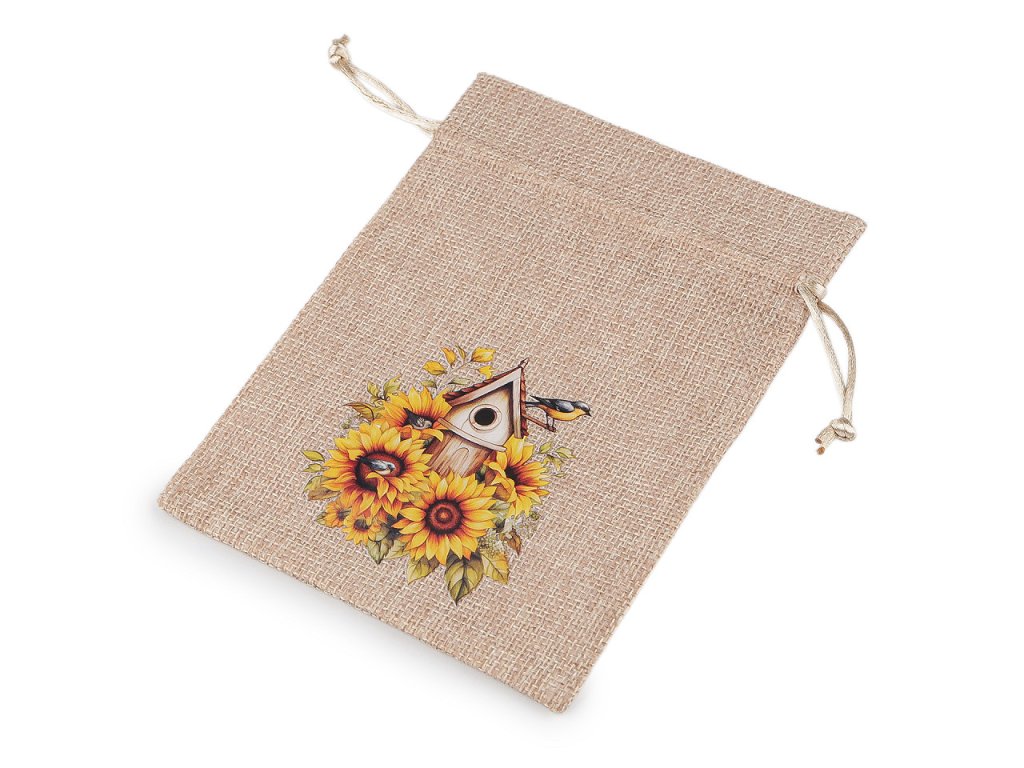 Dárkový pytlík slunečnice 13x18 cm imitace juty