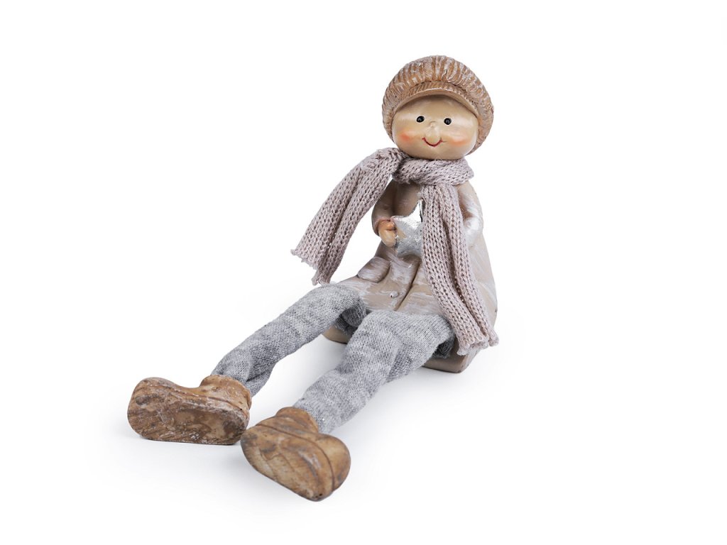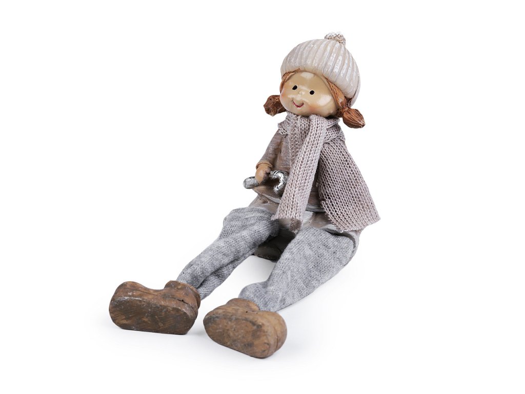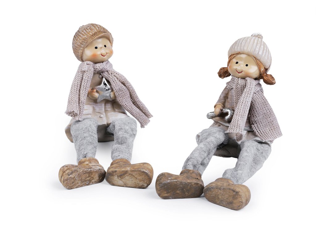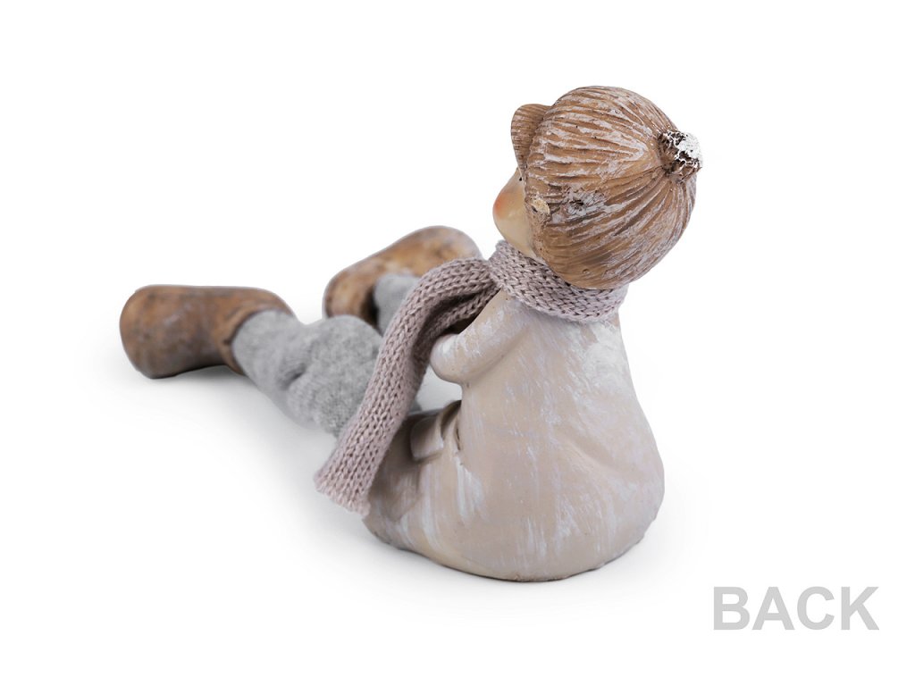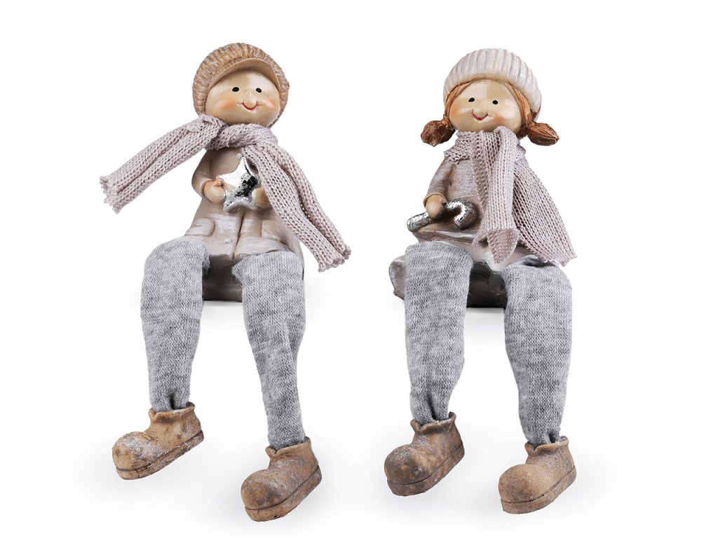 Postavičky dětí v zimním oblečení jsou velmi roztomilé. Kolem krku mají uvázanou šálu z pleteniny. Působí vintage dojmem. Vyniknou zakomponované ve vánočních a zimních aranžmá. Postavičky sedí, mají volné nožky, budou krásným doplňkem na poličce, stole nebo třeba i krbové římse. Výška sedící postavičky je cca 8 cm.- Šířka: 5 cm