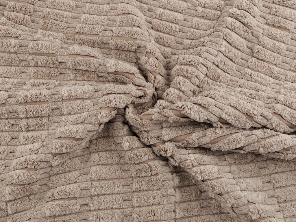 Dekorační látka s 3D plyšovou strukturou je měkká, pevná a příjemná na dotek. Využijete ji na šití bytového textilu a doplňků jako jsou povlaky na polštáře, přehozy, deky apod.- Gramáž: 295 - 335 g/m²