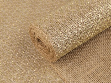Přírodní juta je pevná, kvalitní a protkaná zlatým lurexovým vláknem. Okraje má obšité. Můžete z ní vyrobit běhoun, prostírání, různé dekorace a...