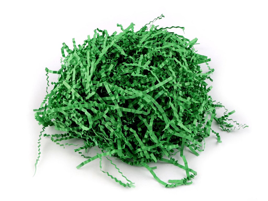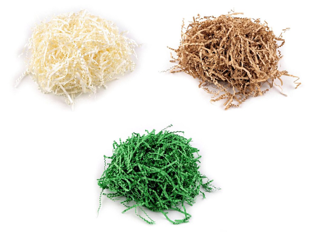 Zvlněná papírová tráva je vhodná k aranžování i k dekoraci. Zajímavě vynikne v dárkových krabičkách, kdy do ní uložíte dárky.