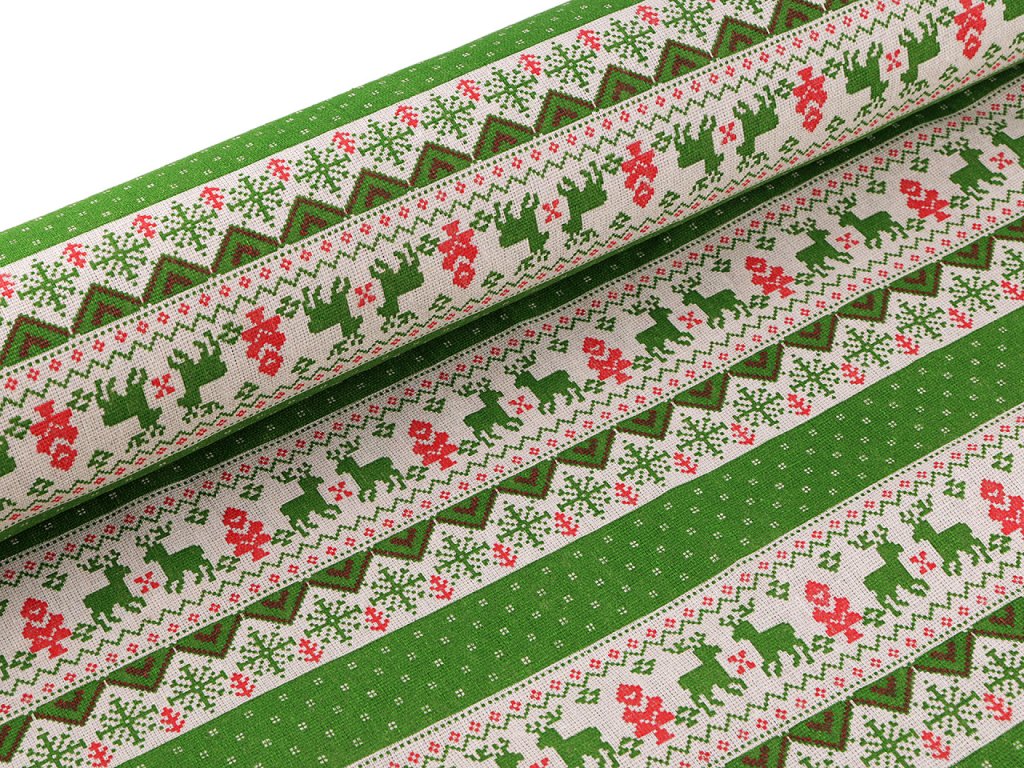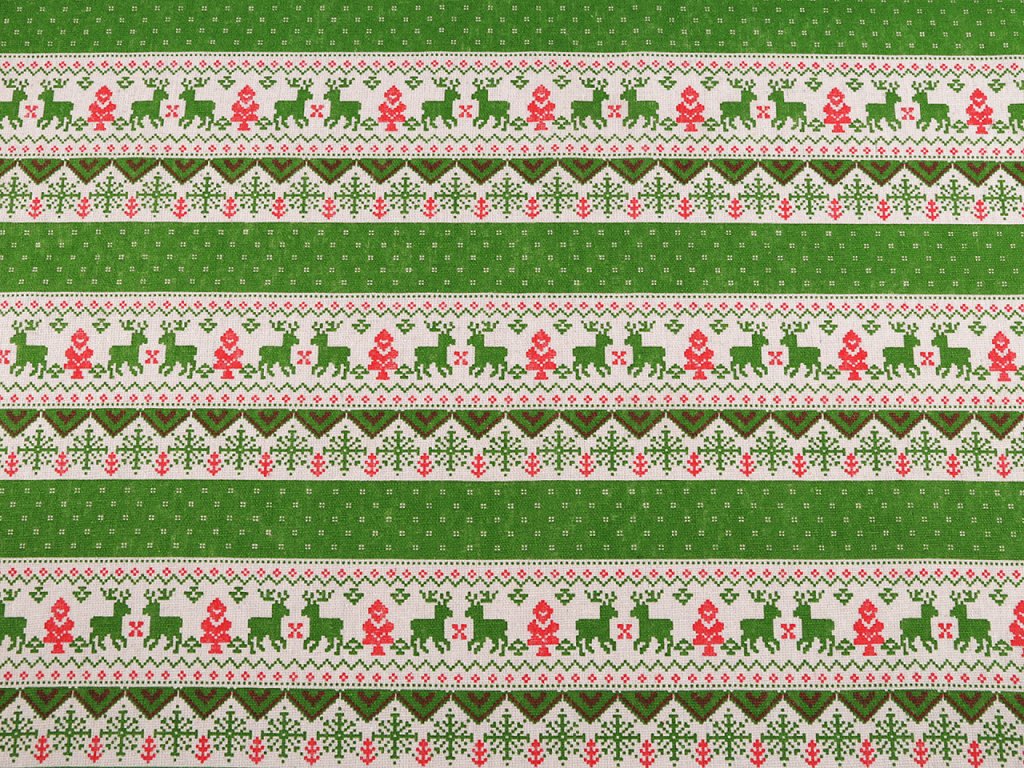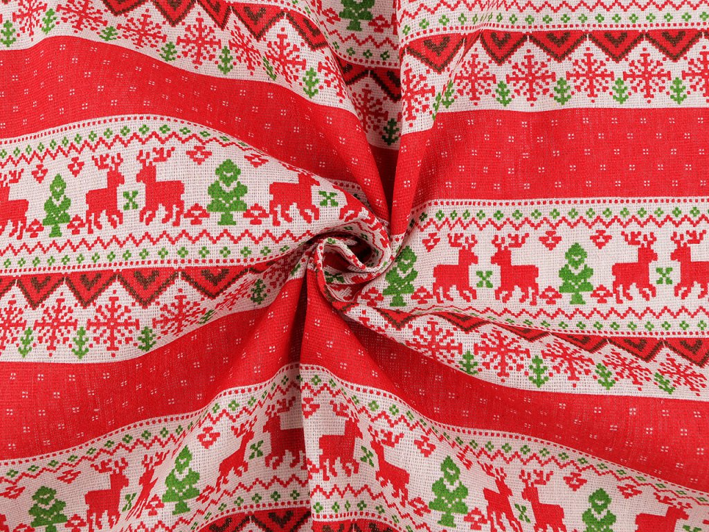 Pevnou dekorační látku zdobí vánoční motivy. Můžete z ní ušít tašky, pytlíky, běhouny na stůl, prostírání nebo dekorační polštáře.- Gramáž: 160 g/m²