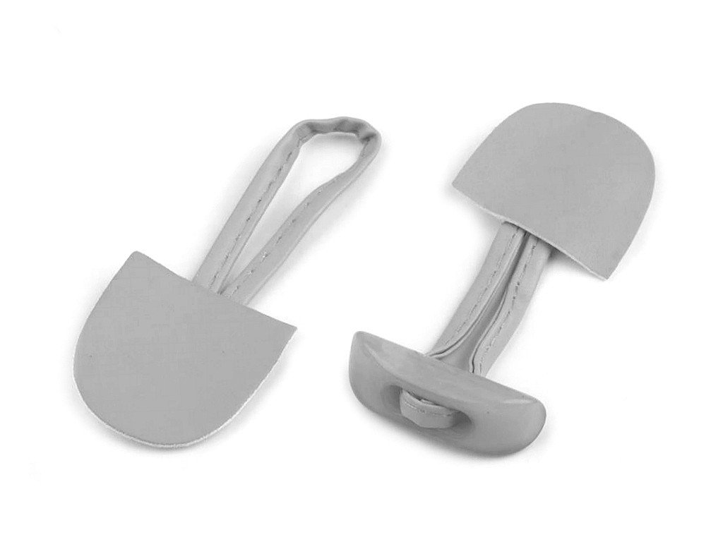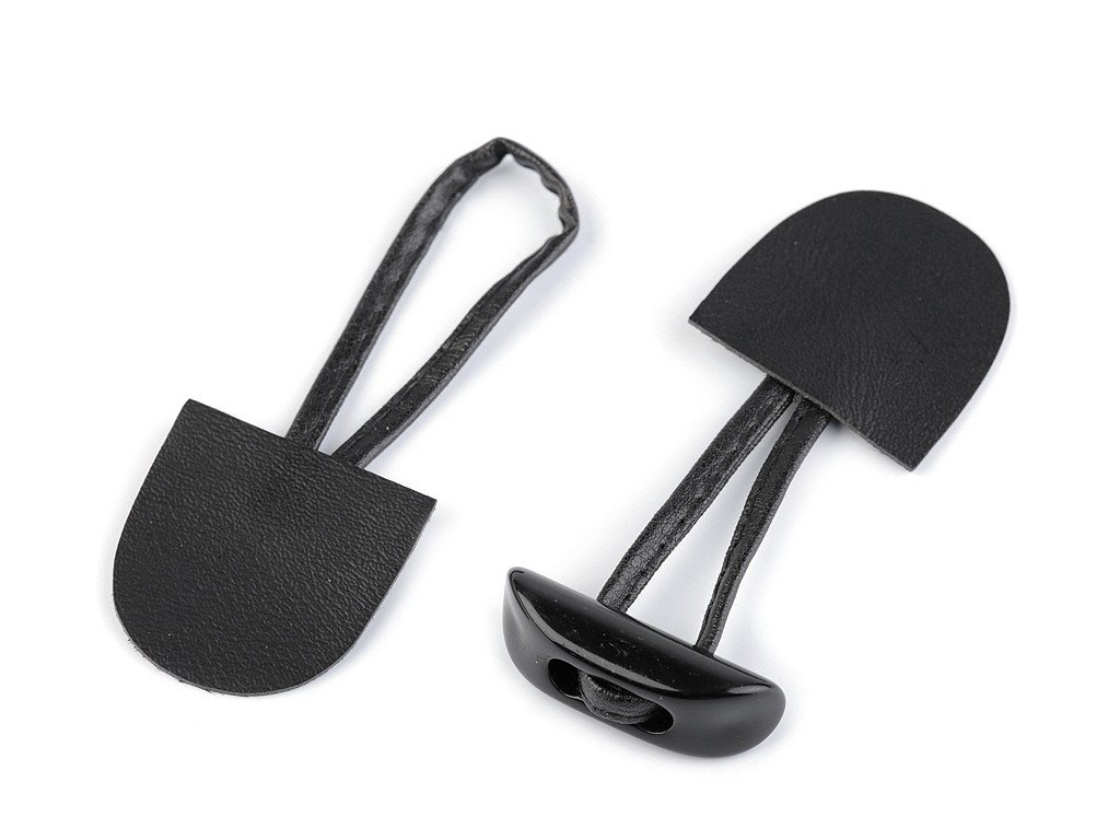 Zapínání z eko kůže působí elegantně. Využijete ho na kabáty, svetry, saka nebo kožichy. Je vhodné také pro šití duffle coat. Zapínání může být rozlepené, což není důvod k reklamaci - jedná se o polotovar, který je nutno prošít.- Rozměry knoflíku: 13 x 37 mm
