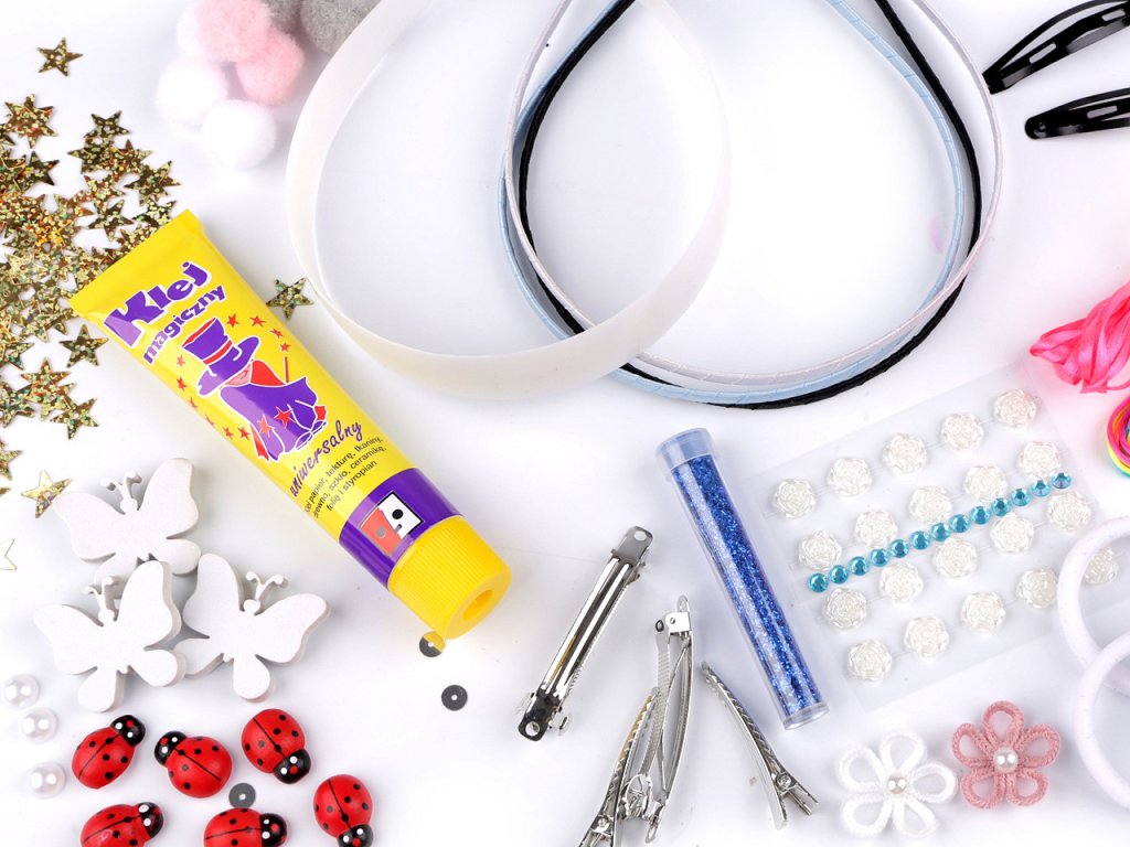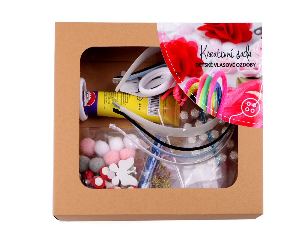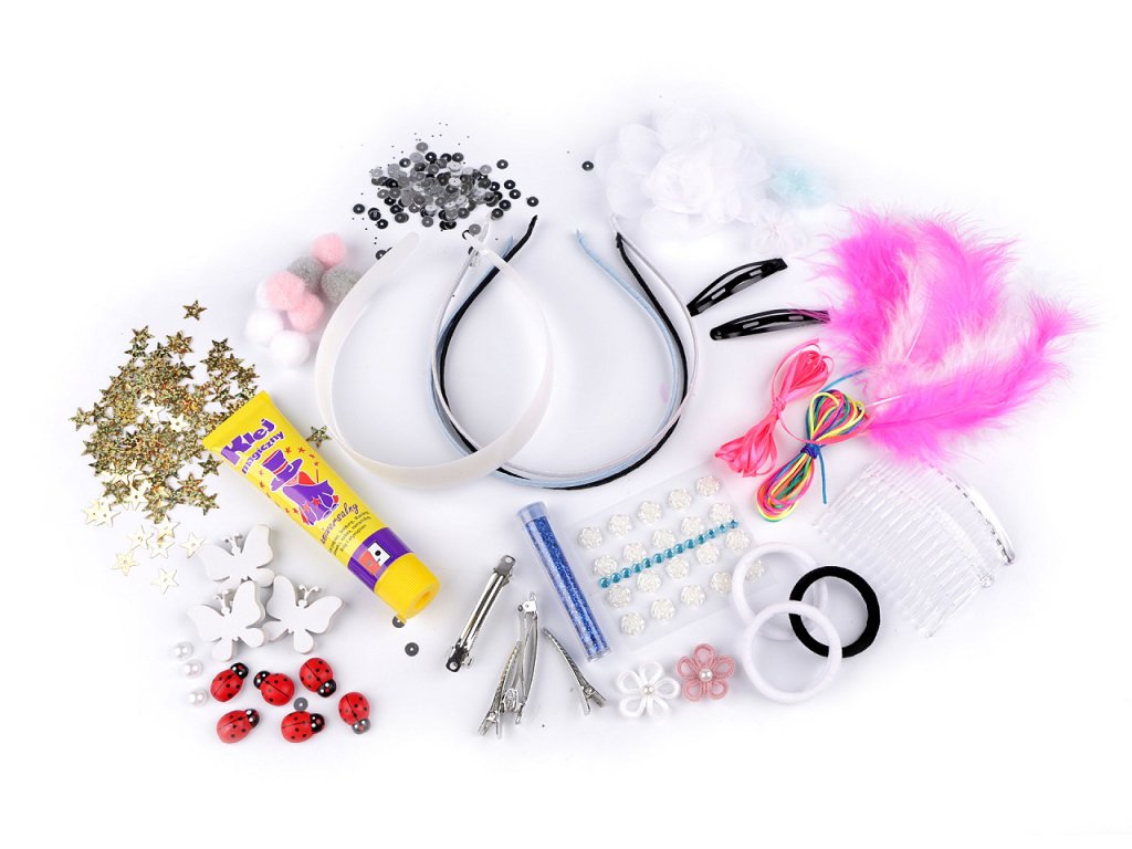 S kreativní sadou Design Stoklasa si můžete vyrobit vlastní vlasové ozdoby. Je sestavená z těch nejzajímavějších kousků z našeho obchodu, které se budou doslova kombinovat samy. Můžete mít každou ozdobu jinou nebo si naopak vytvořit celý sladěný set. Věříme, že vás i vaše děti naše kreativní sada nadchne. Sada obsahuje: 3 saténové čelenky pukačky plastová čelenka 2 kovové sponky 2 průhledné hřebeny 1 lepidlo. Dále v sadě najdete komponenty, které se mohou lišit nebo mohou být nahrazeny jinými kreativními doplňky: - knoflíčky květiny - flitry květiny - flitry kulaté - glitry - saténové růžičky - mix textilních květů - samolepicí včelky - bambulky - pírka - mix samolepicích kamínků a perel - mix saténových šňůrek. Upozorňujeme zákazníky, že komponenty se mohou lišit, fotografie je ilustrační. Sada není určená pro děti do 3 let z důvodu vdechnutí malých kousků.- Design Stoklasa