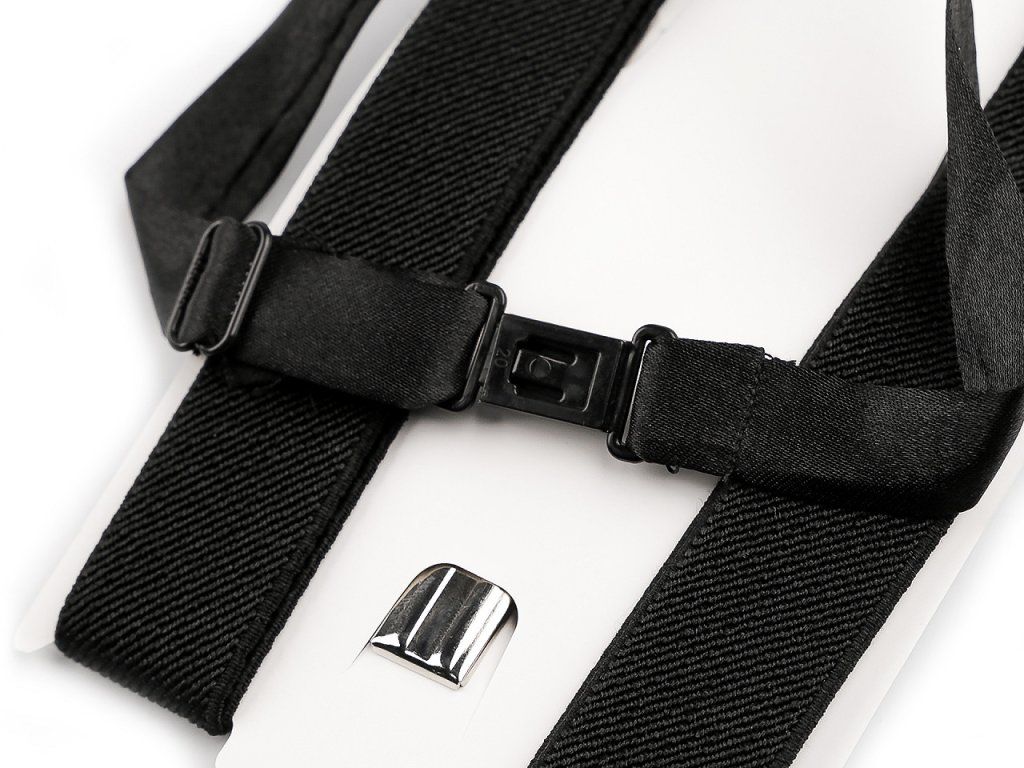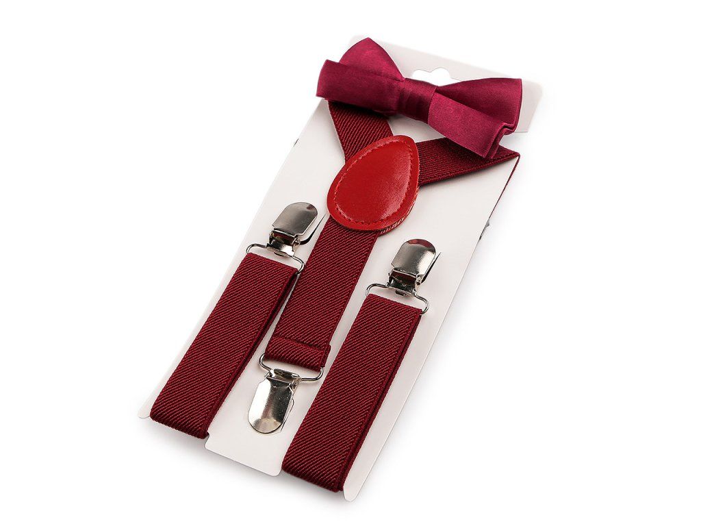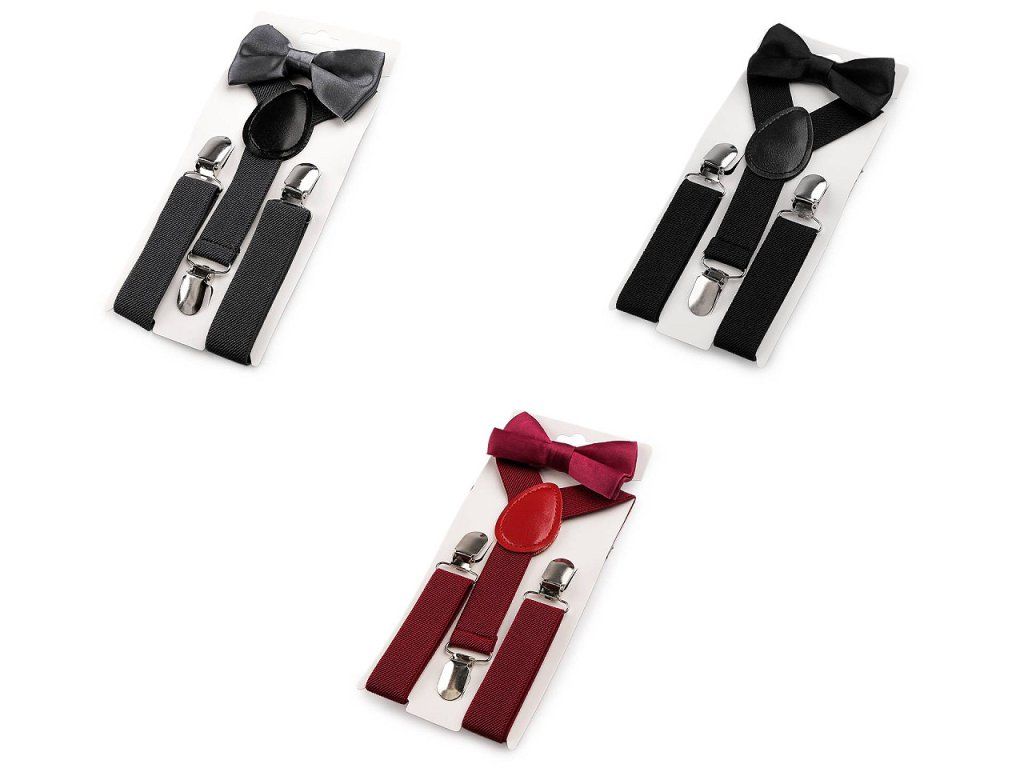 Dětský set se skládá z jednobarevných šlí a motýlka. Tato sada vykouzlí z malých andílků dokonalé gentlemany. Šle ve tvaru Y se připevňují pomocí kovových žabek - dvě vpředu a jedna vzadu. Saténový motýlek má regulaci, lze jej tedy pohodlně nastavit dle potřeby. Rozměry motýlka jsou 5 x 9 cm. Rozpětí pásku je 37 - 48 cm. Zapínání je plastové. Sada je vhodná pro děti ve věku 2-6 let.- Šíře: 2,5 cm