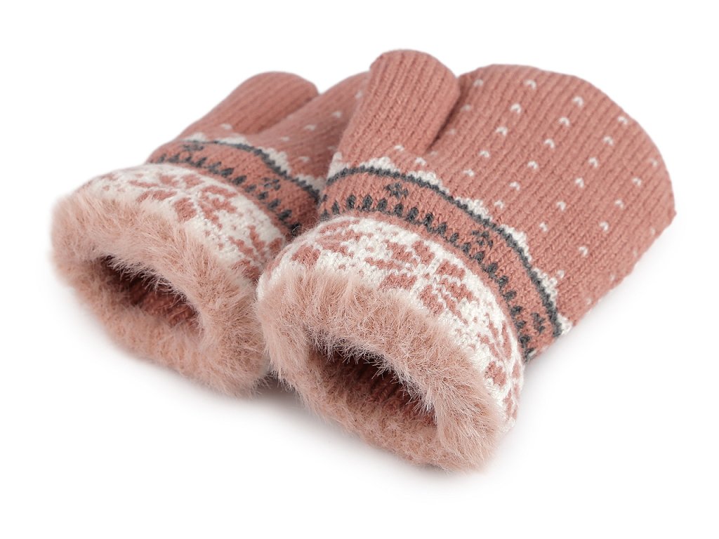 Dětské pletené palčáky s norským vzorem budou skvělým společníkem malých dětí. Jsou dvouvrstvé, uvnitř mají teplý hebký kožíšek. Jsou pružné, z příjemné pleteniny, ruce se výborně přizpůsobí, dobře se dětem oblékají. Díky pružnému lemu okolo zápěstí pevně drží, nesklouzávají. Šířka je měřená na volně položených rukavicích uprostřed (bez palce). Doporučujeme je pro děti cca 3 - 5 let.- Šířka: 6,8 cm