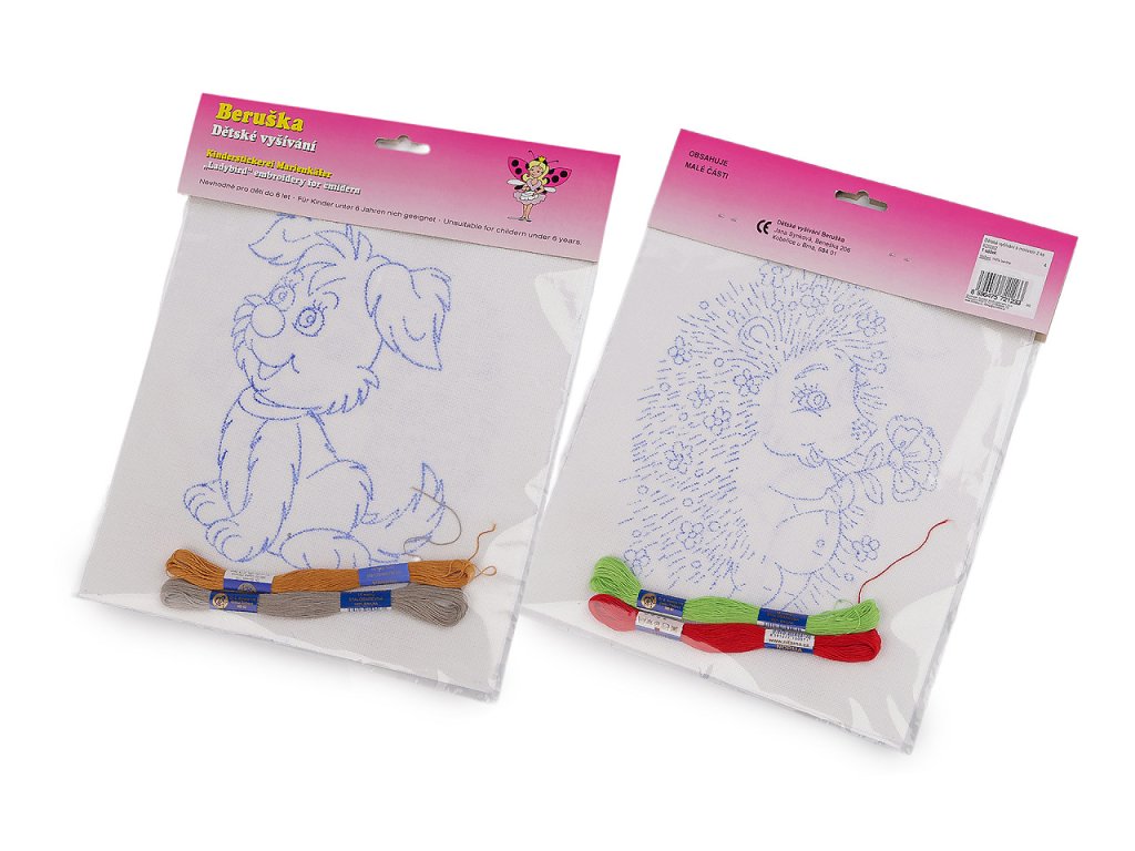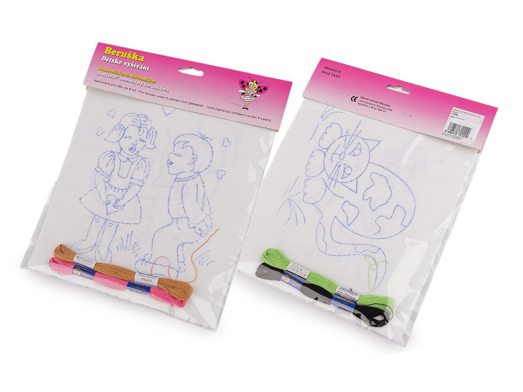 Dětské vyšívání s předtištěným motivem je skvělým způsobem, jak seznámit děti s touto technikou a zabavit je. Rozvíjí u nich jemnou motoriku a soustředění. Balení obsahuje 4 ks příze a 2 plátna s předtištěným motivem, usnadňující dětem vedení příze po správných liniích. Vyšívací kruh není součástí balení. Rozměry plátna jsou cca 22 x 26 cm. Rozměry obrázku jsou cca 15-20 x 20 cm. Vyšívání je vhodné pro děti od 6 let.- Rozměry plátna: 22 x 26 cm