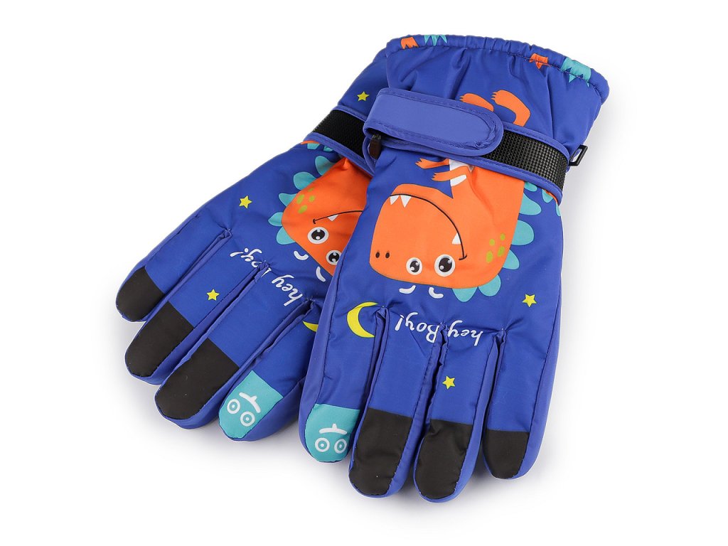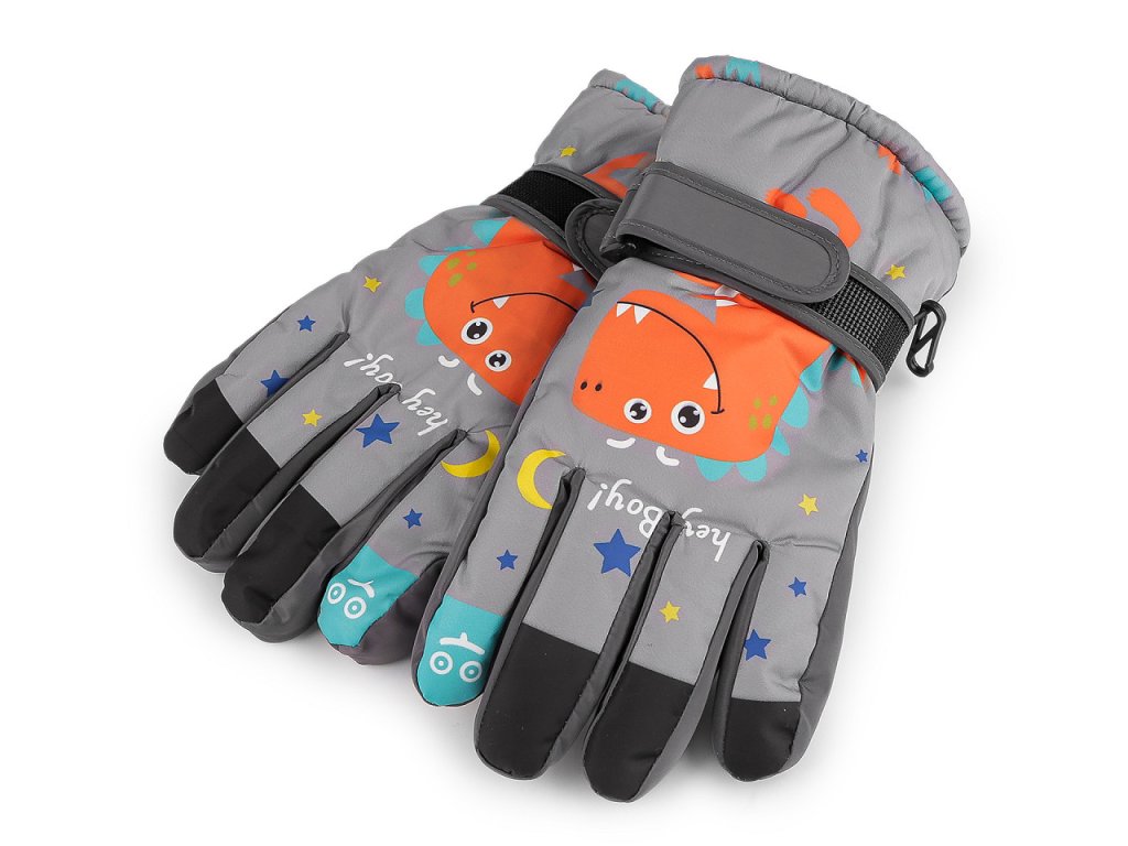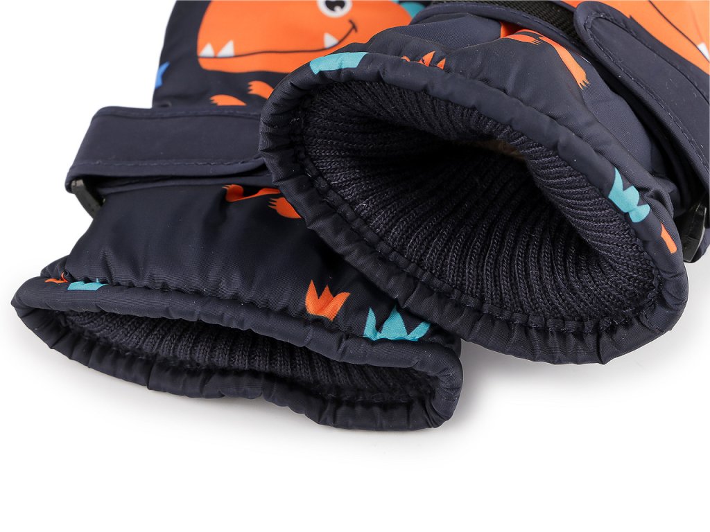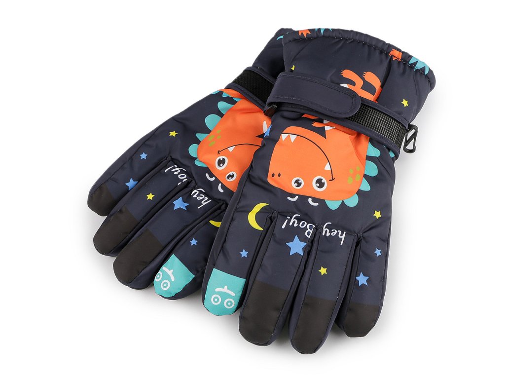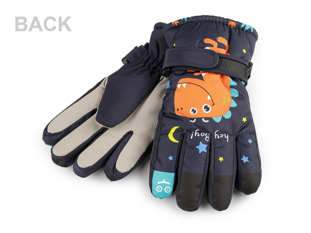 Dětské zimní rukavice jsou ozdobené potiskem dinosaura. Jsou perfektní pro všechny zimní aktivity, ať už jde o stavění sněhuláků, dovádění na saních nebo jen procházky s rodinou během chladných zimních dní. Díky pogumovaných dlaní mají výborný úchop. Jsou zateplené plyšovým kožíškem, který děti skvěle zahřeje. Na zápěstí se dají zmenšit, aby perfektně seděly, díky pásku se suchým zipem. Na konci mají manžetu z pružného úpletu, aby pěkně přiléhaly a na bocích najdete plastovou karabinu na vzájemné sepnutí. Jsou vhodné do zimy nebo do chladnějšího podzimního počasí. Šířka je měřená na volně položených rukavicích uprostřed (bez palce). Rukavice dodáváme zabalené v zipovém sáčku.- Šířka: 10 cm