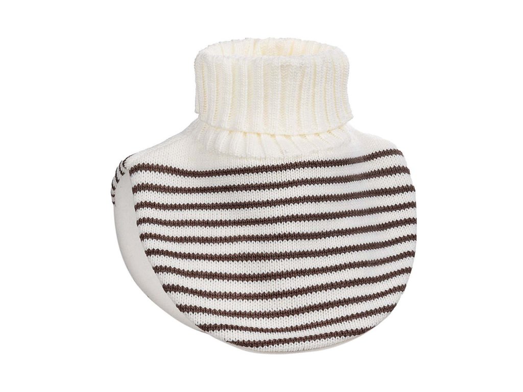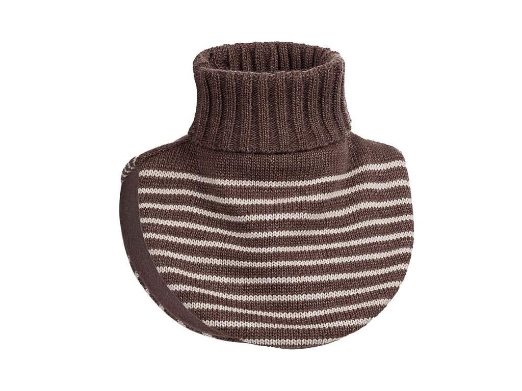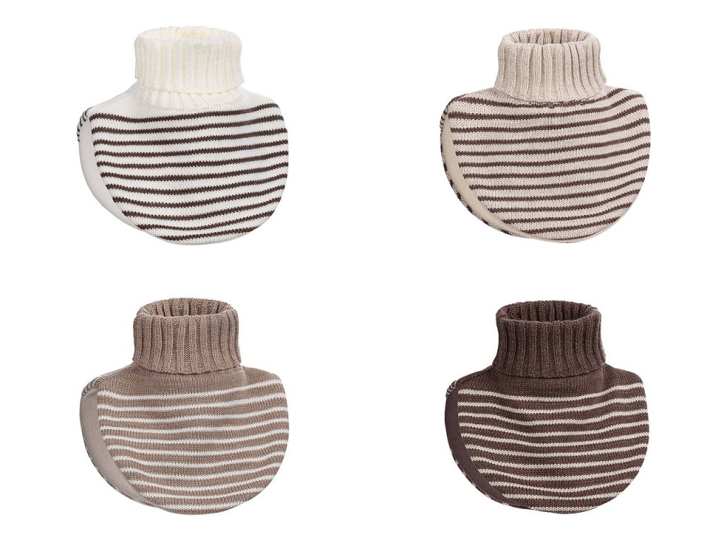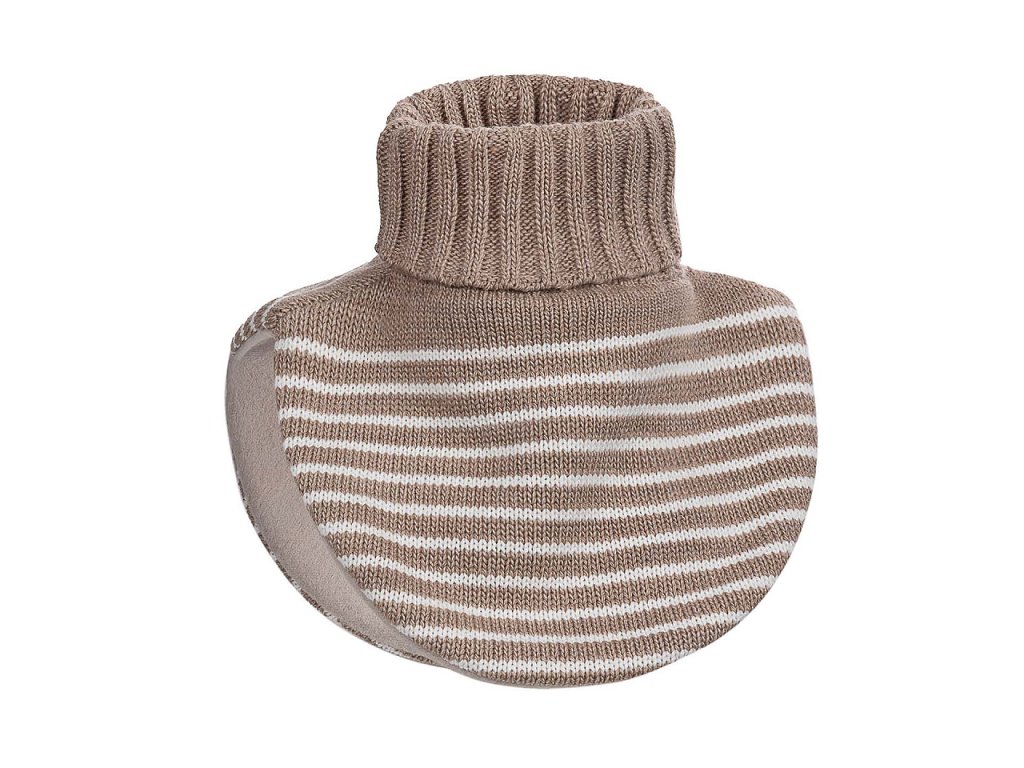 Dětský pletený nákrčník s motivem proužků je vhodný do chladného ročního období. Je lehoučký a velice pohodlný. Lem okolo krku má pružný. Přední i zadní část nákrčníku je dvojitá, podložená hřejivým fleecem. V případě velkého chladu mohou děti zvednout lem nahoru a chránit si tak dolní část obličeje.- Obvod kolem krku: 28 - 40 cm