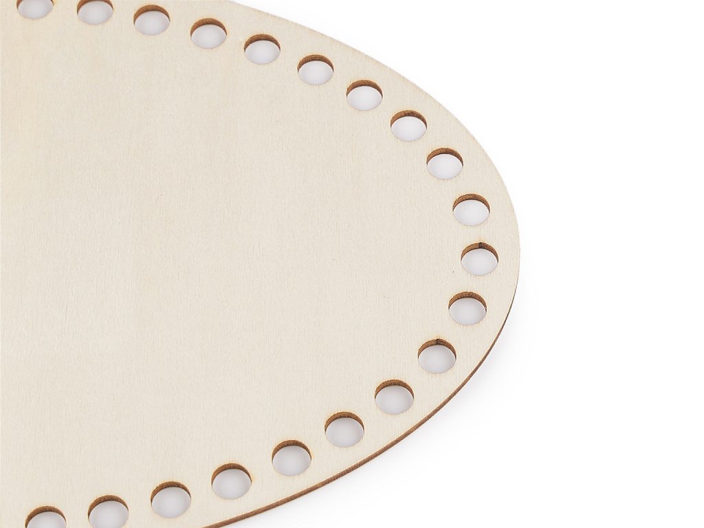 Dřevěný ovál s otvory je vhodný na výrobu bytových dekorací a doplňků. Je přesně vyřezaný laserem. Můžete jej použít jako dno k výrobkům z pedigu - košíky a tácky. Je vhodný i na háčkování košíků. Poslouží také na výrobu drhaných obrázků a závěsů. V neposlední řadě se dá využít i na výrobu lapačů snů a zvonkoher. Překližku můžete domalovat např. akrylovými barvami, popisovači, glitrovými lepidly, využít ubrouskovou techniku apod. Ovál má 44 otvorů.- Rozměry: 15 x 25 cm