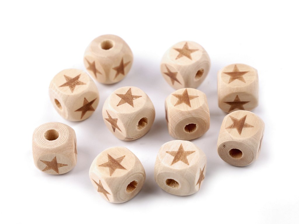 Přírodní dřevěné korálky ve tvaru oblé kostky jsou kvalitní, mají hezké opracování. Ze všech stran mají laserem vygravírovaný motiv. Hodí se na výrobu nejen dětských náhrdelníků, ale jsou využívané i do dámských a pánských šperků. Mají malou hmotnost, jsou vhodné i na dozdobení lapačů snů nebo macrame dekorací.- Rozměry: 14 x 14 x 14 mm