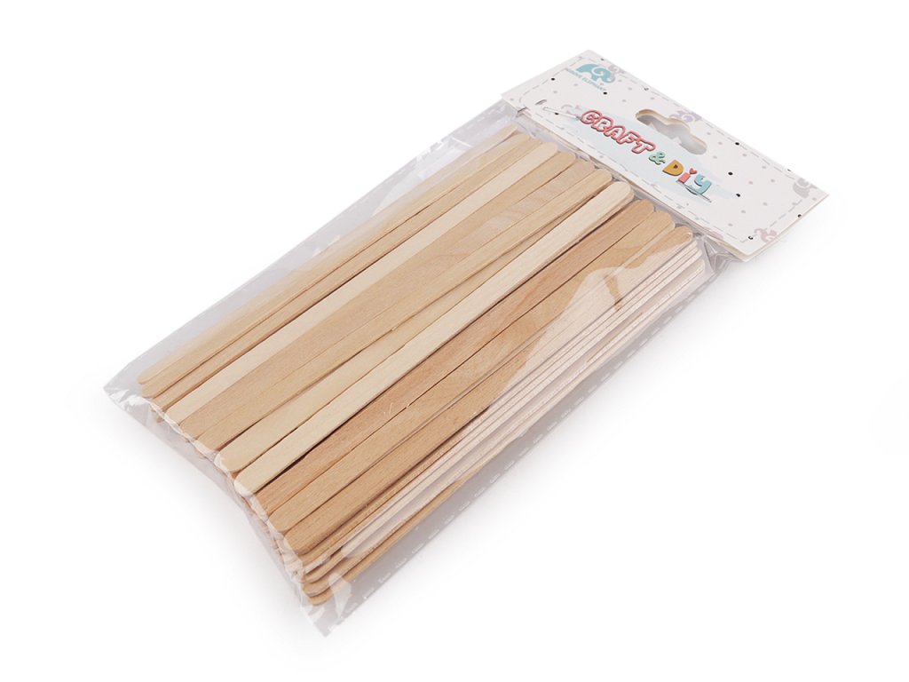 Malé špachtle jsou vyrobené z precizně opracovaného dřeva. Na dotek jsou velice příjemné. Jsou vhodné pro výrobu dekorací, skládaček pro děti apod. Dají se z nich tvořit 3D předměty jako jsou krabičky, domky, ploty, rámečky, zapichovátka do květináčků apod. Můžete je slepit dohromady nebo si z nich děti staví jako ze stavebnice. Přírodní dřevo můžete barvit. Vhodné barvy jsou akrylové nebo různá mořidla, která zdůrazní strukturu dřeva. 1 sáček obsahuje 80 ks špachtlí.- Šířka: 0,6 cm