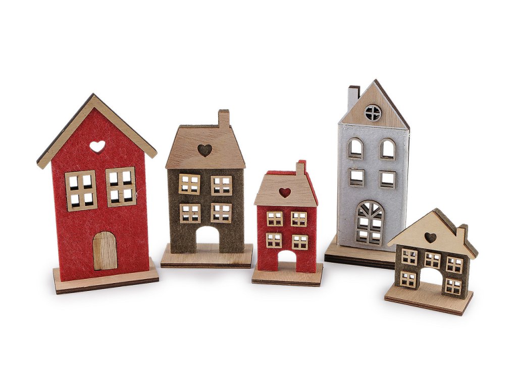 Dekorační domeček můžete postavit na parapet okna, polici nebo třeba krbovou římsu. Stylově doplní různá aranžmá. Materiál je v kombinaci dřeva a filcu. Domečky jsou jednostranné, pouze varianta č. 2 je oboustranná. Rozměry č. 1: 7 x 15,5 x 4,5 cm. Rozměry č. 2: 8 x 15 x 4 cm. Rozměry č. 3: 7,5 x 12,5 x 4 cm. Rozměry č. 4: 7,5 x 12,5 x 4 cm. Rozměry č. 5: 6 x 7,5 x 3,5 cm. Rozměry č. 6: 5,5 x 10 x 3,5 cm.- Šířka: 5,5 - 8 cm