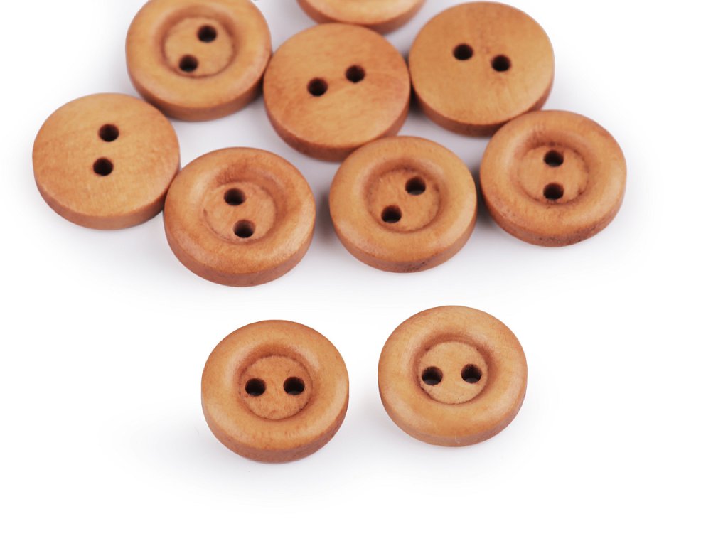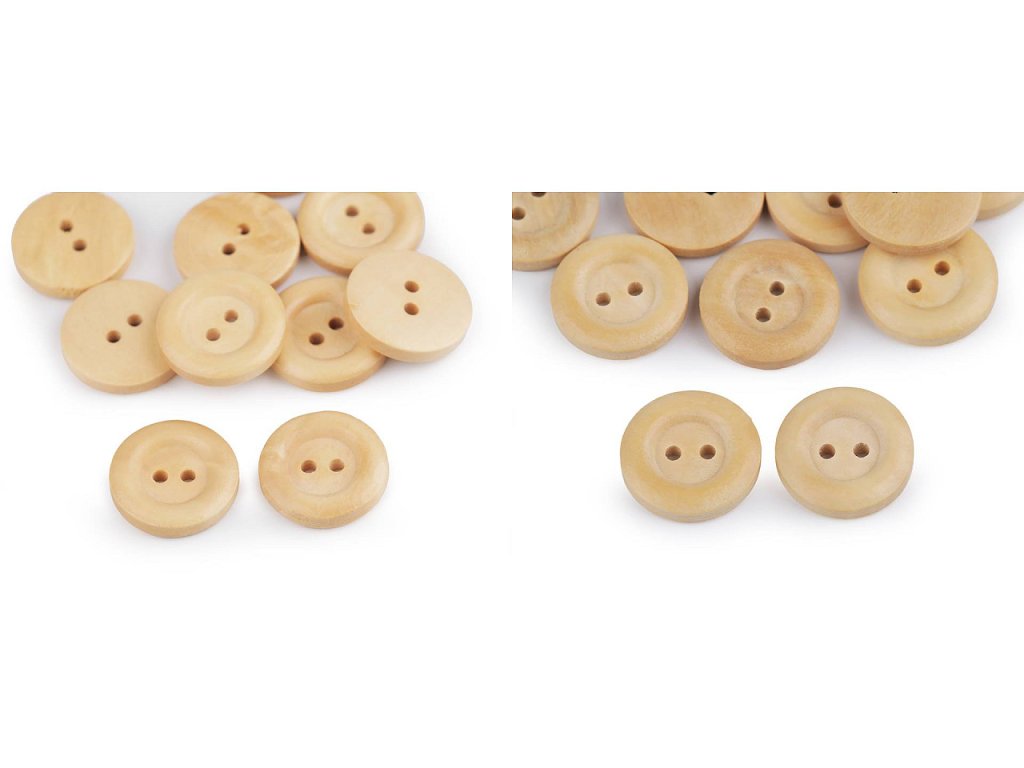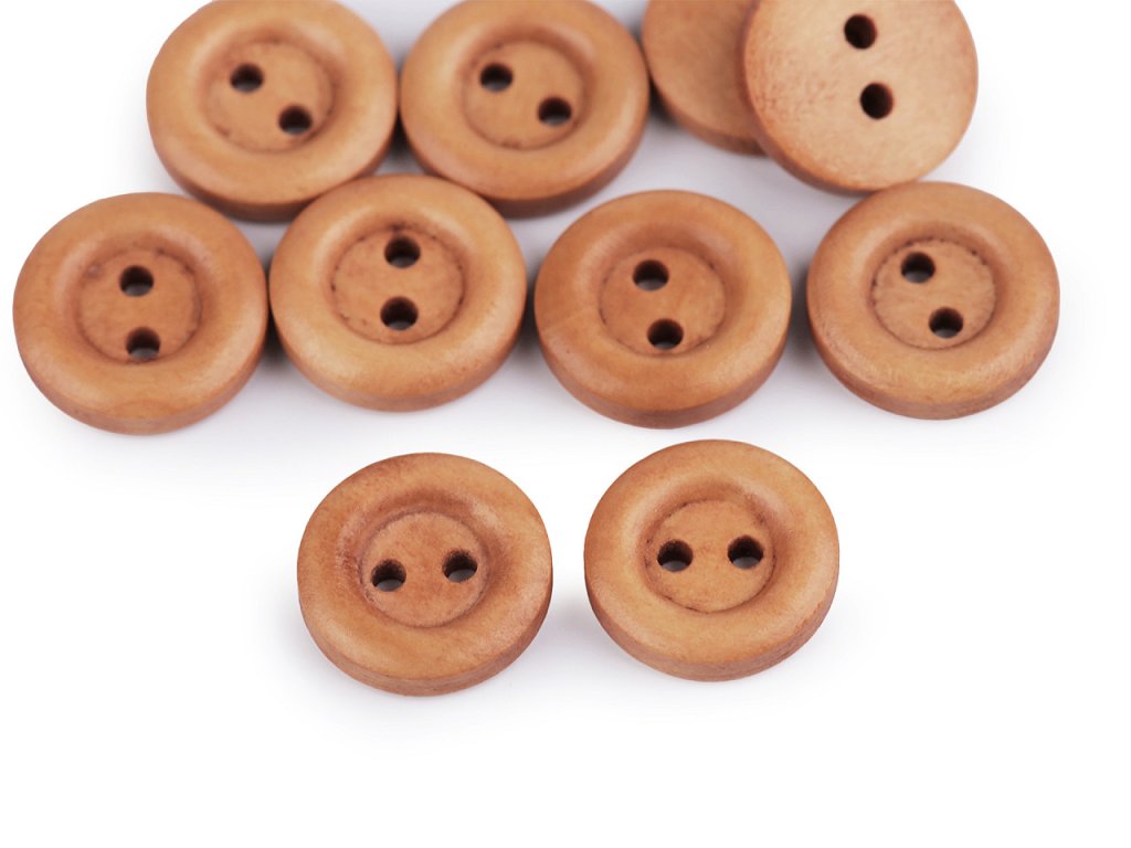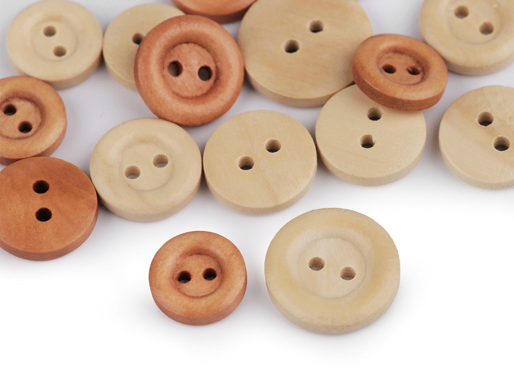 Dřevěné knoflíky jsou vhodné k dekoračním účelům. Lze je použít i na oděvy, ale bez možnosti praní. Velikost knoflíků naleznete v této tabulce.- Průměr: 13; 15; 18; 19; 20 mm