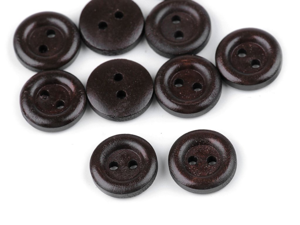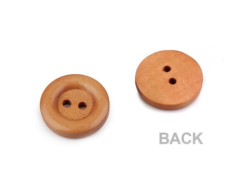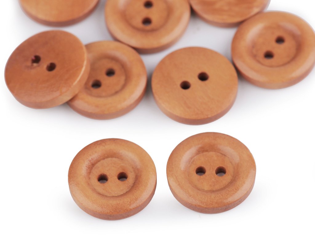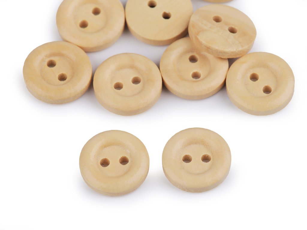 Dřevěné knoflíky jsou vhodné k dekoračním účelům. Lze je použít i na oděvy, ale bez možnosti praní. Velikost knoflíků naleznete v této tabulce.- Průměr: 13; 15; 18; 19; 20 mm