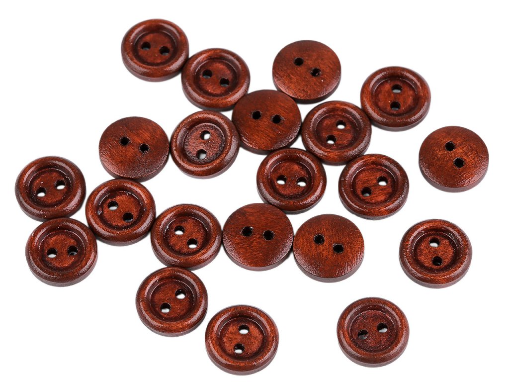 Dřevěné knoflíky jsou vhodné k dekoračním účelům. Lze je použít i na oděvy, ale bez možnosti praní. Velikost knoflíků naleznete v této tabulce.- Průměr: 12,4 mm