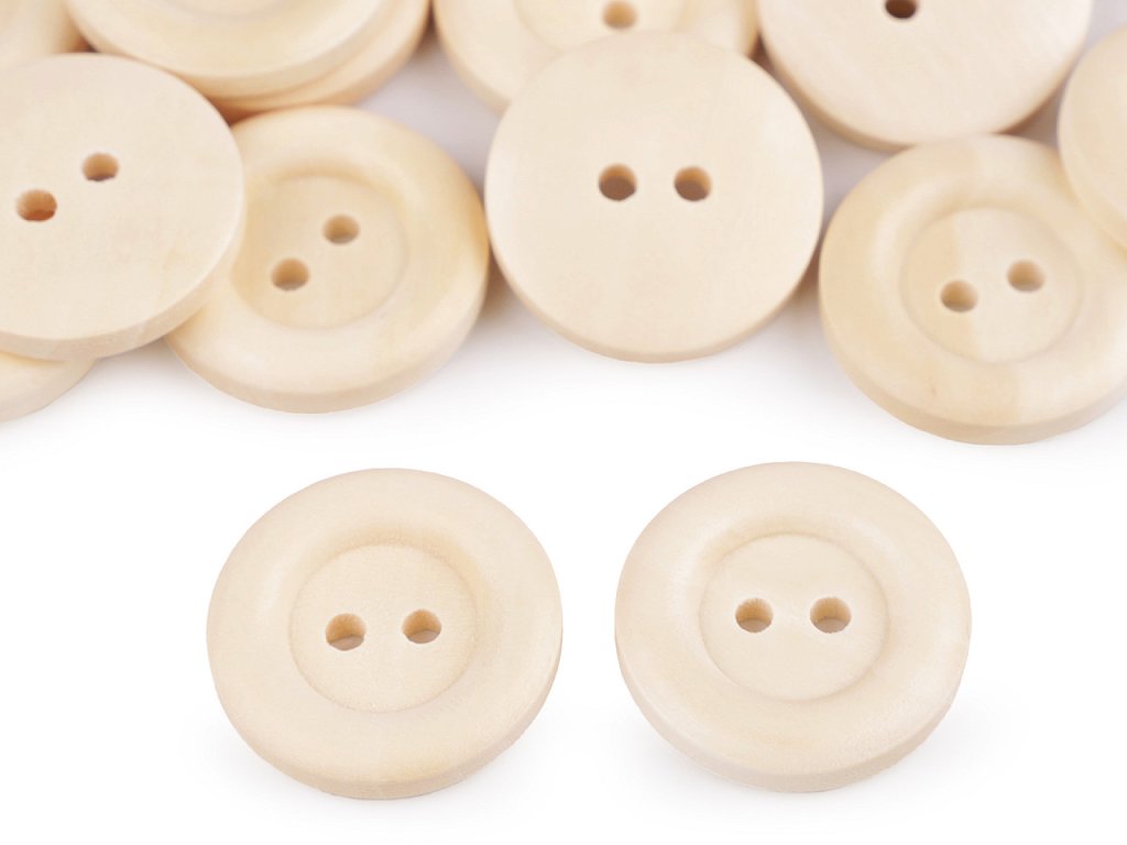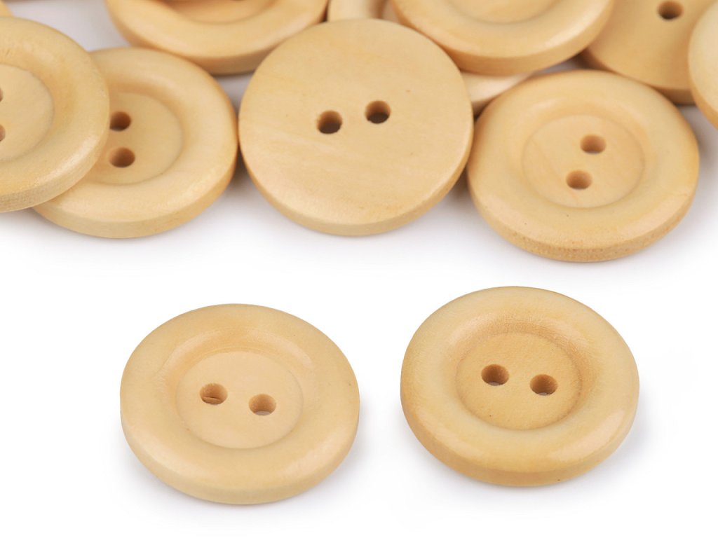 Dřevěné dvoudírkové knoflíky jsou vhodné k dekoračním účelům. Lze je použít i na oděvy, ale bez možnosti praní. Velikost knoflíků naleznete v této tabulce.- Průměr: 22,9 mm