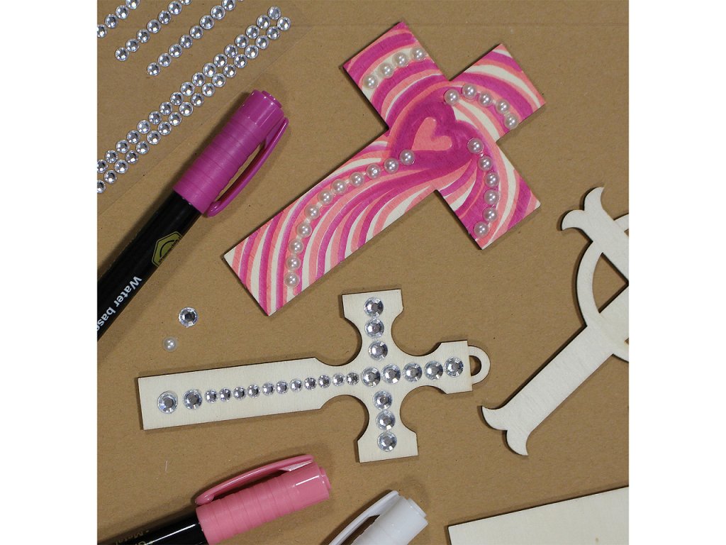 Dřevěný kříž k tvoření / domalování sada 4 ks