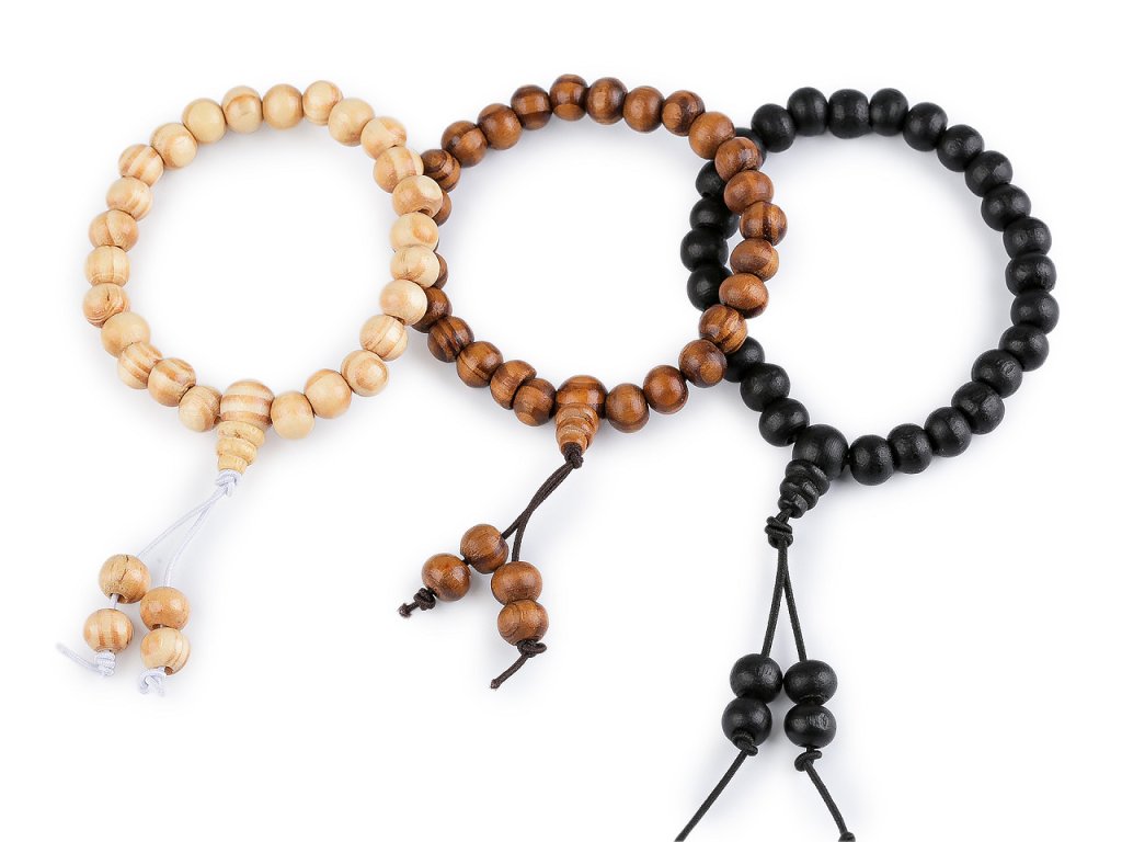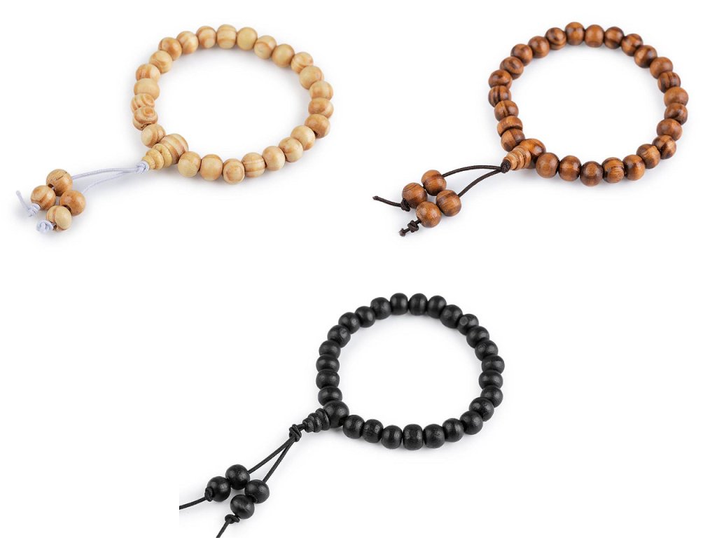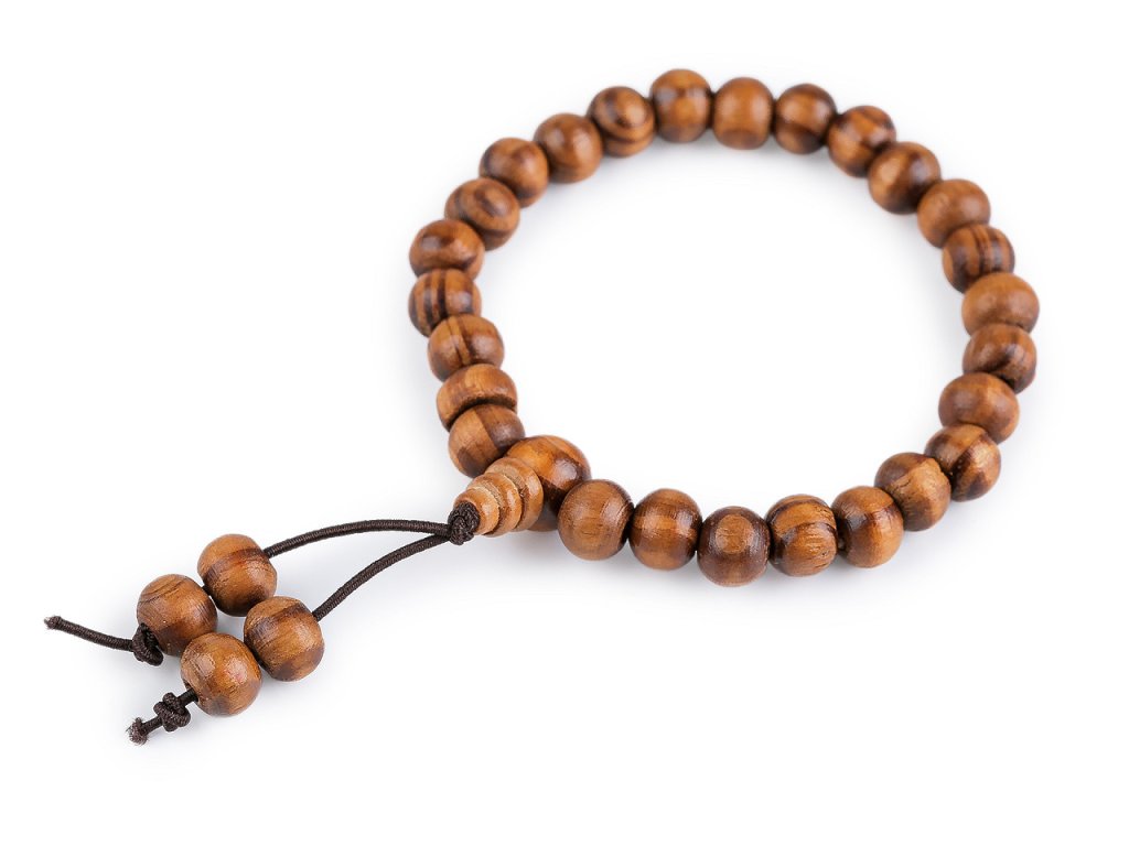 Náramek z dřevěných korálků ve stylu Japa Mala sluší ženám i mužům. Zaujme svou jednoduchostí a přírodním vzhledem. Je vyrobený z přírodního lakovaného dřeva, které je příjemné na dotek a dodává šperku jedinečný rustikální charakter. Je ideálním dárkem pro milovníky přírodních šperků i ty, kteří hledají cestu k hlubšímu vnitřnímu klidu. Náramek má díky lehce se natahující pružence univerzální velikost.- Délka: 16 - 24 cm