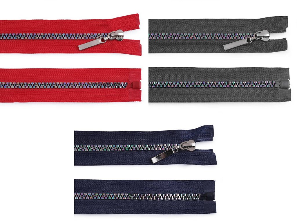 Dělitelný kostěný zip vás zaujme svým duhovým efektem, který povýší vaše oblečení na nevšední. Zip využijete na bundy, mikiny, svetry, apod.