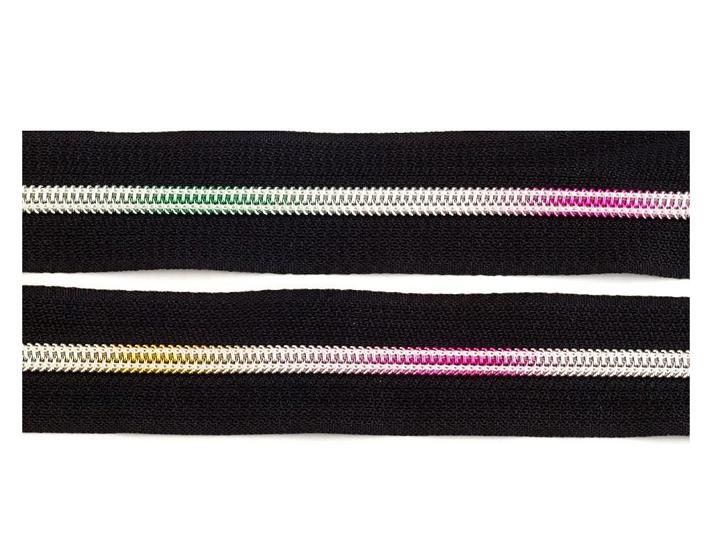 Spirálový zip v metráži upoutá vaši pozornost duhovým efektem. Zip využijete na oděvy, ale také na výrobu originálních zipových tašek nebo pouzder. K tomuto zipu je vhodný jezdec, který najdete pod kódem 780107, 890342, 750998. Náš tip: Pokud budete mít problém s nasazováním jezdce na zip, zkuste ho nasadit z rubu.- Šířka spirály: 6 mm