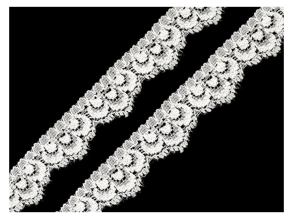Elegantní pružná krajka vám pomůže originálně ozdobit vaše oblečení nebo doplňky. Použití: Krajku můžete našít na spodní prádlo, kostýmky, halenky či šaty. Je vhodná také na oživení doplňků jako jsou ubrusy, prostírání, polštáře apod. Krajka může mít v návinu 4 až 5 prostřihů. Šíře krajky se po konečné úpravě může lišit o ±6%.- Šíře: 16 mm