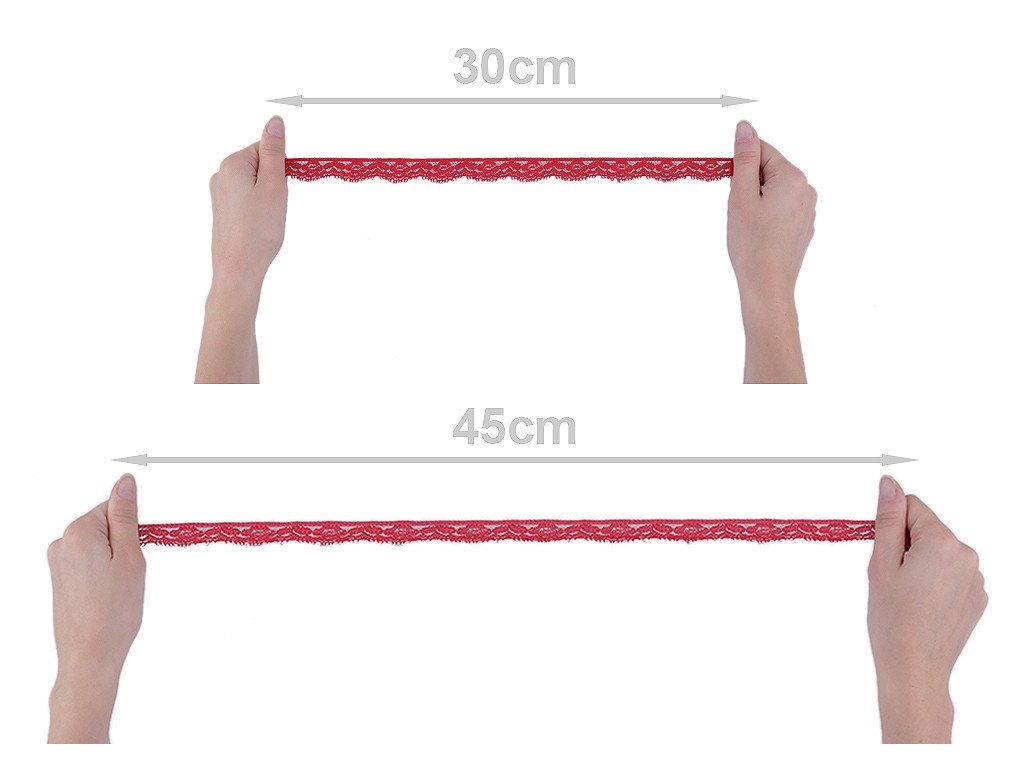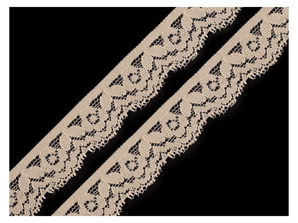 Krajka o šíři 20 mm je vyrobená z kvalitního polyamidu a díky elastanu je pružná. Nejčastěji se používá na ozdobení spodního prádla. Lze ji ale použít i na dámská trika, sukně nebo ke zdobení např. svatebních či narozeninových přání. Krajku nabízíme v návinu 25 m.Upozornění: Krajky č. 3 a č. 5 mohou barvit i ve vlažné vodě. Krajka může mít v návinu 4 až 5 prostřihů. Šíře krajky se po konečné úpravě může lišit o ±6%.- Šíře: 20 mm