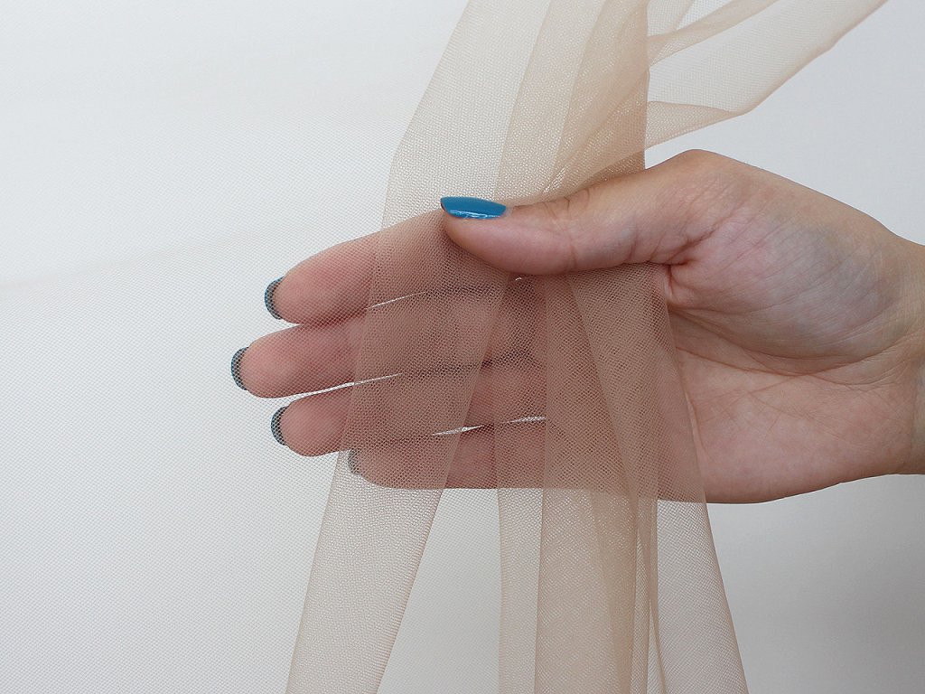 Tento speciální pružný tyl je vhodný přímo na tělo, protože neškrábe pokožku. Je velmi jemný a splývavý. Využijete ho do výstřihů, dekoltů, na rukávy, vsadky, tělové podšívky a celkově na vrchní části oděvů - tam, kde potřebujete "holý efekt". Hodí se na svatební, plesové a večerní šaty, halenky, gymnastické, taneční a baletní kostýmy apod. Je vhodný také na závoje, k ozdobení slavnostní tabule apod. Používá se i jako podklad šatů pro krajkové a výšivkové aplikace. Dobře a rychle schne a snadno se udržuje. Průměr oka je cca 0,6 mm.- Gramáž: 20 g/m²