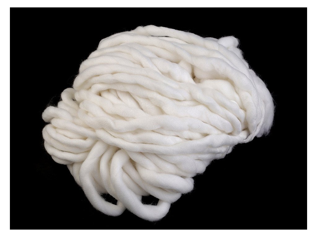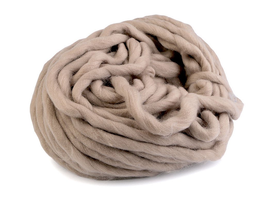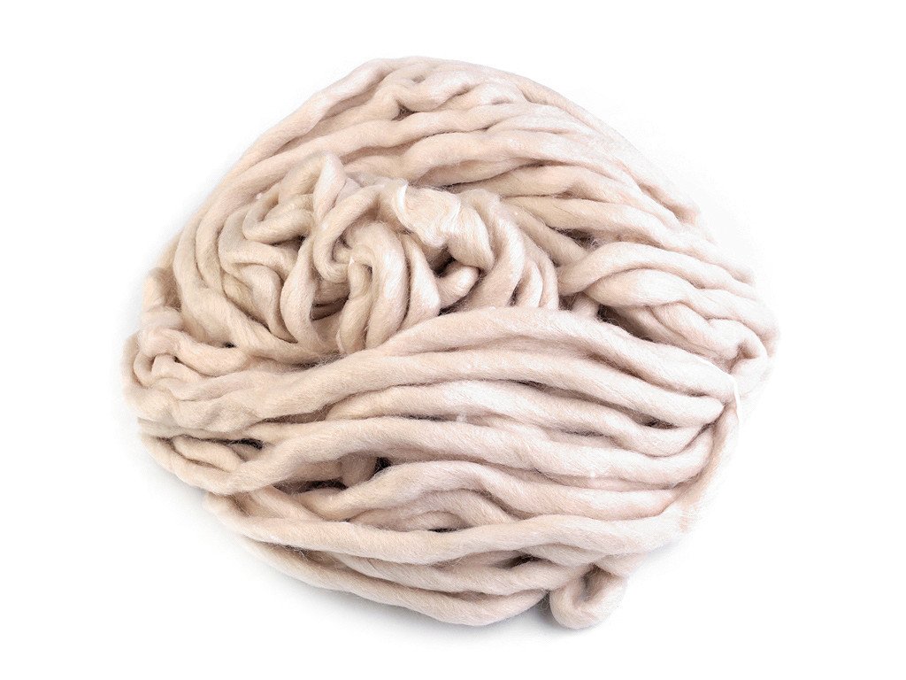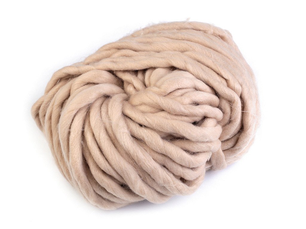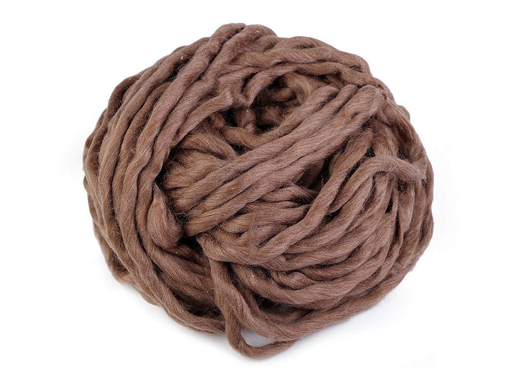 Extra silná příze na pletení či háčkování potěší všechny kreativce, kteří rádi pracují se zajímavým materiálem. Používá se na obří úplety, které se pletou na rukou, nebo na velkých jehlicích. Přízi využijete na výrobu dek, plédů, objemných šálů, přehozů na postel apod. Velikost jehlic: 20 Příze je z česanců a může pouštět vlákna - je to její přirozená vlastnost, nejedná se o závadu. Po prvním vyprání upleteného výrobku, na co nejnižší teplotu a nejjemnější ždímání, se vlákna spojí a zpevní. Příze lehce změní svou strukturu. Tmavší barvy mohou lehce barvit. Vzorek na fotografii (55 x 36 cm) byl upleten z 1 klubíčka, jehlicemi č. 20.- Průměr: 10 - 15 mm