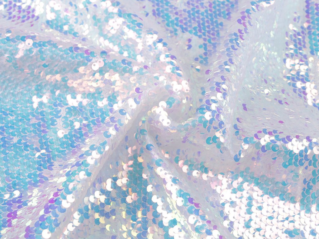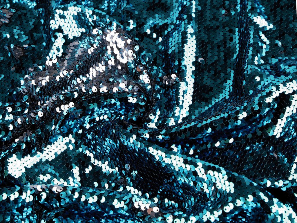 Saténová látka má díky flitrům (Ø5 mm) neskutečně zajímavé odlesky. Využijete ji na šití tanečních a karnevalových kostýmů (mořská panna, jednorožec apod.) i plesových šatů a doplňků (psaníčka, pompadurky). V případě použití na holé tělo je nutné látku podšít.- Gramáž: 355 g/m²