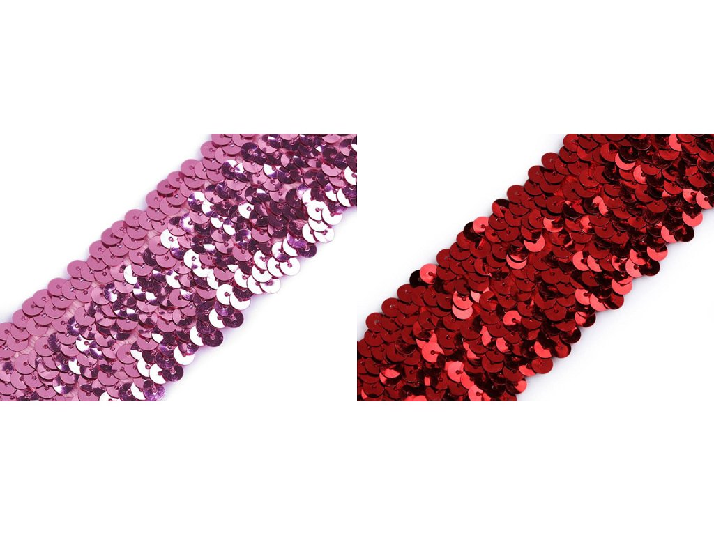 Prýmek zdobí našité lesklé flitry. Díky gumě ve spodní části je elastický. Použití: Prýmek je velmi oblíbený a můžete ho našít na jakékoliv oblečení. Využijete ho k ozdobení lemů halenek,sukní, společenských šatů, karnevalových, divadelních nebo tanečních kostýmů. S prýmkem si můžete vyrobit i originální čelenku do vlasů. Průměr flitru je 5 mm.- Šíře: 45 mm