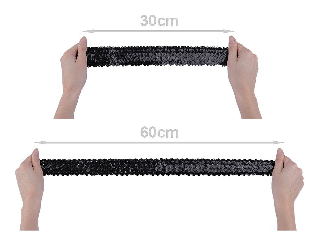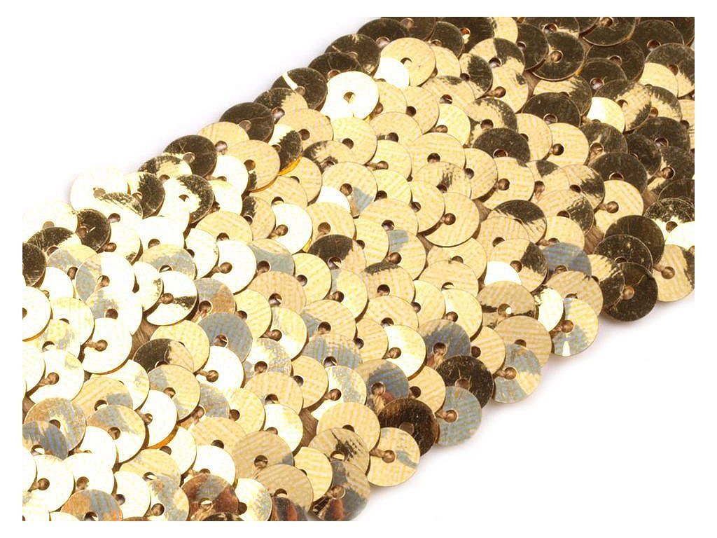 Prýmek zdobí našité hologramové flitry. Díky gumě ve spodní části je elastický. Použití: Prýmek je velmi oblíbený a můžete ho našít na jakékoliv oblečení. Využijete ho k ozdobení lemů halenek, společenských šatů, karnevalových, divadelních nebo tanečních kostýmů. S prýmkem si můžete vyrobit i originální čelenku do vlasů. Průměr flitru je 6 mm.- Šíře: 45 mm