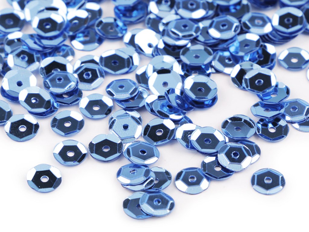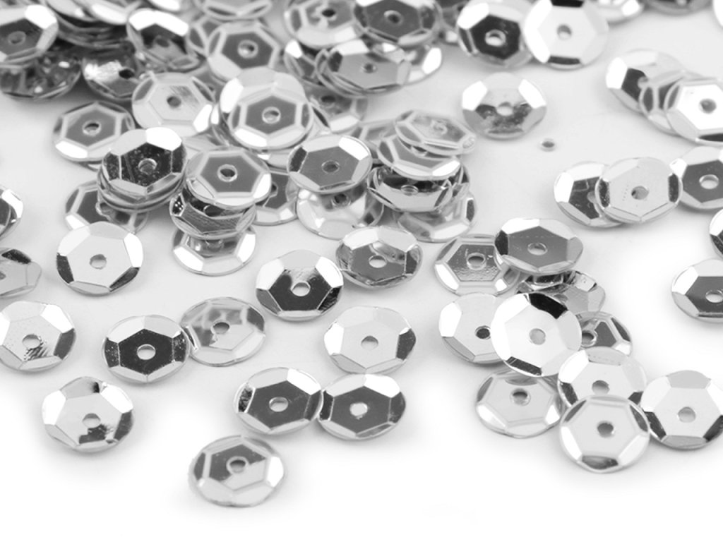 Lomené flitry na šatech vypadají úchvatně. Na rozdíl od hladkých jsou tyto flitry prolamovány, při každém pohybu se třpytí a upoutávají pozornost. Jde o sortiment dlouhodobě zákazníky velmi oblíbený a opakovaně kupovaný. V 50 g balení je cca 7500 flitrů.- Průměr: 6 mm