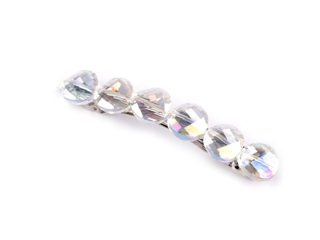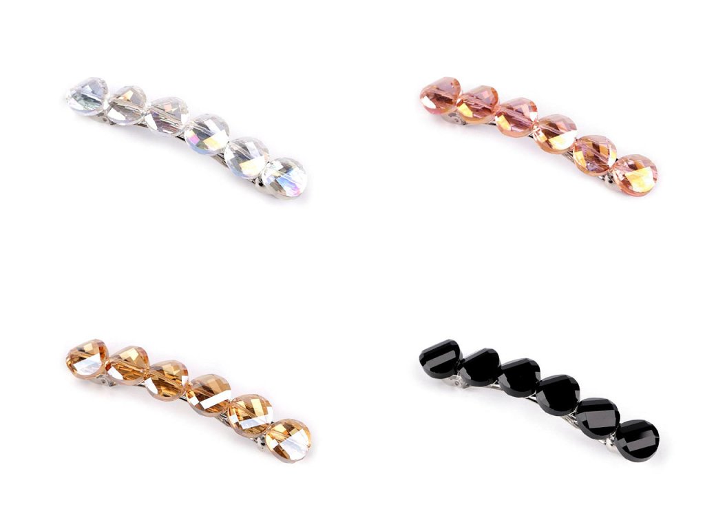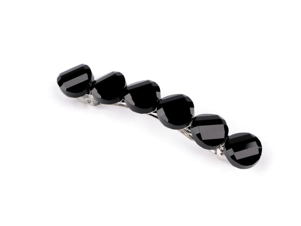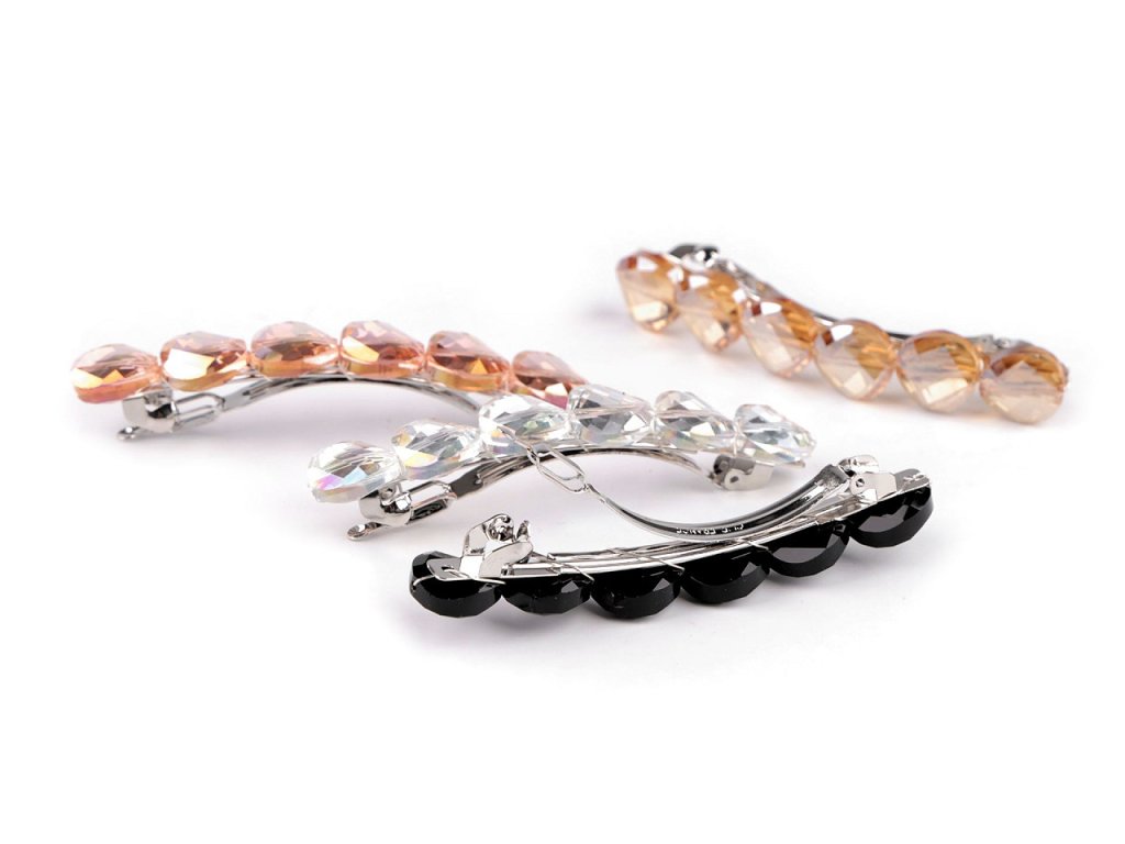 Francouzská spona zdobená akrylátovými broušenými kameny luxusně ozdobí váš účes. Nádherně se leskne a přitahuje pozornost. Ať už máte jemné prameny nebo husté lokny, touto sponou snadno sepnete vlasy do copu nebo vytvoříte elegantní drdol, který bude vypadat, jako kdyby ho vytvořil profesionál. Spona má kvalitní celokovové provedení, zacvakávací mechanismus je pevný. Délka části pro vlasy je 5,5 cm.- Šířka: 1,4 cm