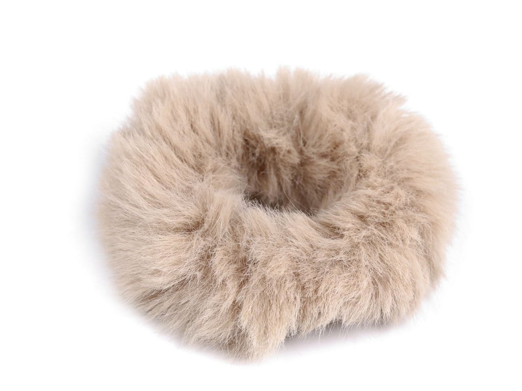 Pružná gumička z umělé kožešiny je měkká a příjemná na nošení. Ve vlasech netahá a hladce se sundává. Bude zajímavou a stylovou ozdobou vašeho účesu. Celkový obvod gumičky volně položené je 12 cm, maximální délka obvodu po roztažení je cca 24 cm.- Vnější průměr: 7,5 cm