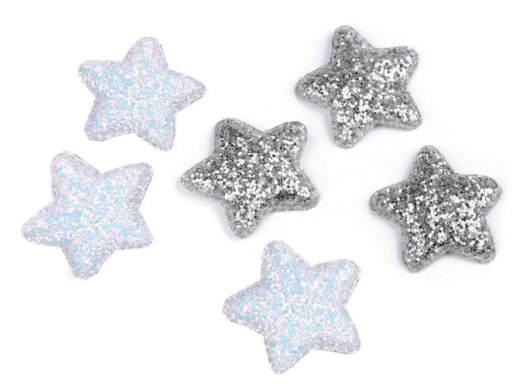 Třpytivé vánoční hvězdy skýtají široké pole použití. Vypadají efektně pokud je jen rozhodíte po parapetu nebo po stole. Také je lze přilepit tavicí pistolí nebo lepidlem na proutěné dekorace, adventní věnce, dárky, případně přišít na pytlíčky. Hvězdičky jsou jednostranné, ze spodní strany je nezdobená textilie.- Průměr: 50 mm