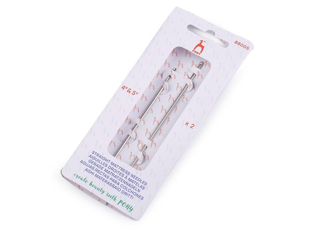 Matrační jehly jsou, díky své délce a ostrosti, určeny k propichování silnějších polštářů, matrací (například u gaučů) apod. Na jedné kartě jsou 2 ks jehel - jedna je delší (13 cm) a druhá kratší (10 cm). Rozměry očka jsou 1 x 5 mm.- Délka: 100 mm, 130 mm