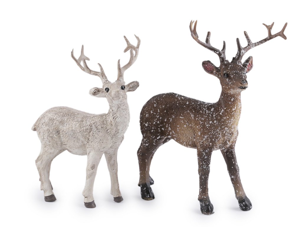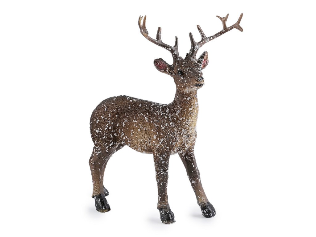 Dekorační jelen je jemně pokrytý umělým sněhem s glitry. Vynikne zakomponovaný ve vánočních vazbách, na věncích, na sváteční tabuli a v zimních aranžmá.- Rozměry: č. 1: 9 x 13,5 cm