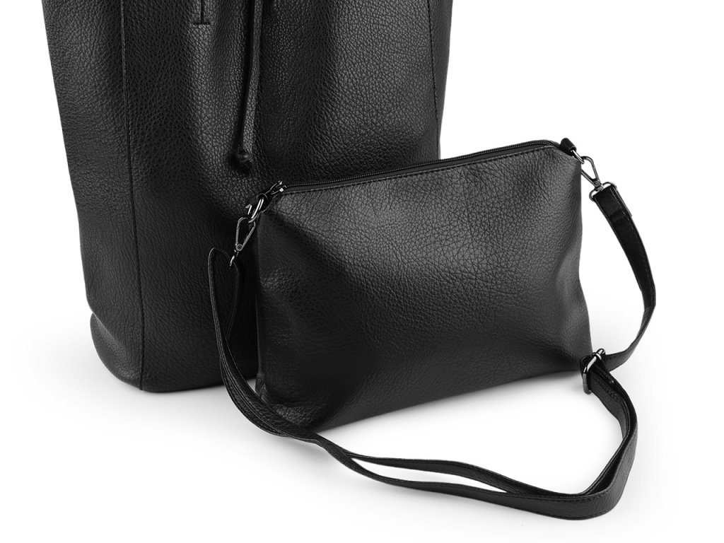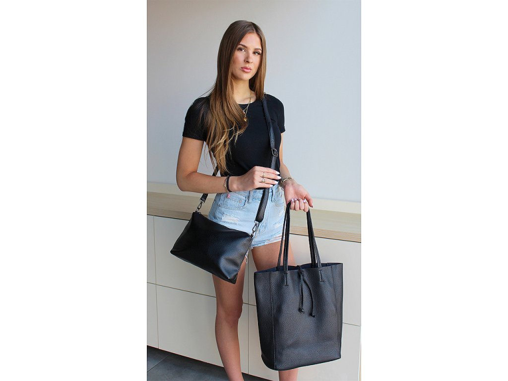 Velkou prostornou kabelku 2v1 si zamilujete pro její jednoduchý, elegantní a čistý design. Zavírá se na zavazovací šňůry. Ucha jsou vhodná k nošení v ruce i na rameni. Uvnitř kabelky najdete menší vkládací pouzdro, ze kterého můžete udělat menší crossbody kabelku. Velká kabelka nemá podšívku. Pouzdro se zavírá na zip, uvnitř má kapsu na zip na uschování malých cenností. K pouzdru můžete připnout odnímatelný popruh na karabiny s plynulou regulací délky, který umožňuje její pohodlné nošení na rameni nebo jako crossbody.- Rozměry (ŠxVxH): 39 x 36 x 13 cm