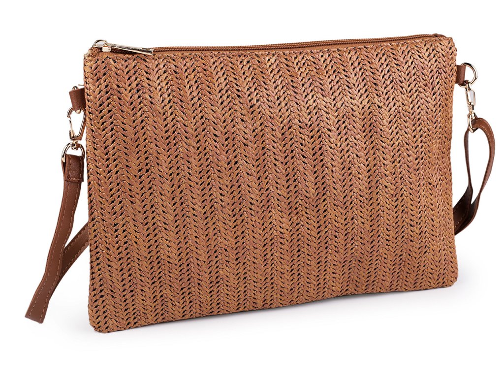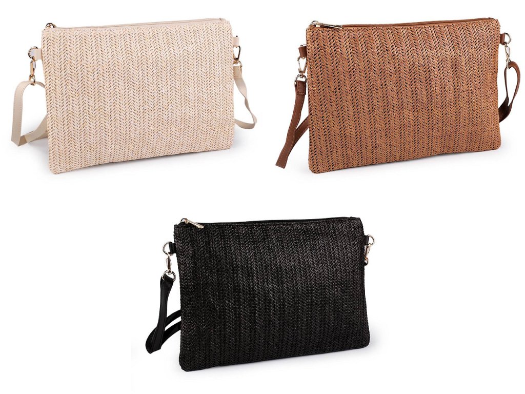 Kabelka s potahem imitujícím slámu je zajímavým módním doplňkem v boho stylu. Je lehká jako peříčko. Zavírá se na zip, uvnitř má kapsičku na drobnosti na zip. Součástí kabelky je nastavitelný popruh, kabelku můžete nosit jako crossbody přes rameno či do kříže. Kabelka disponuje i odepínacím poutkem do ruky. Taška je zabalená v ochranném obalu z netkané textilie.- Rozměry (ŠxVxH): 28 x 20 x 2 cm