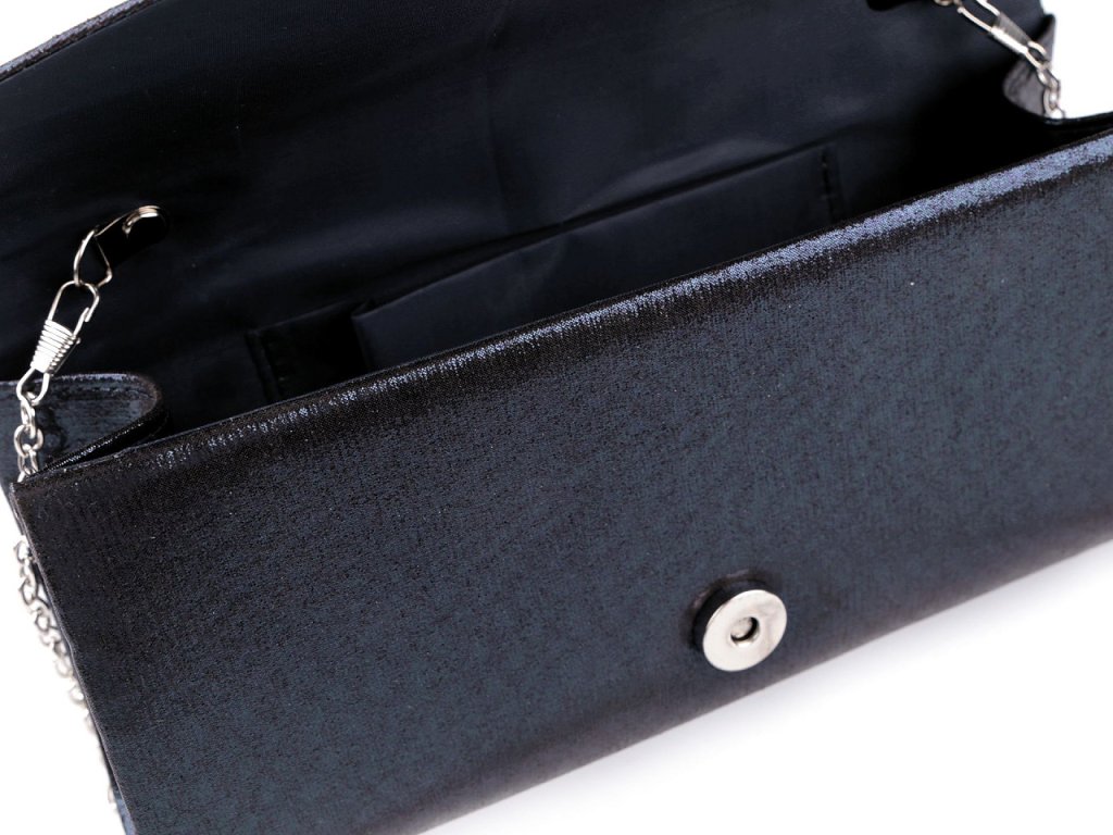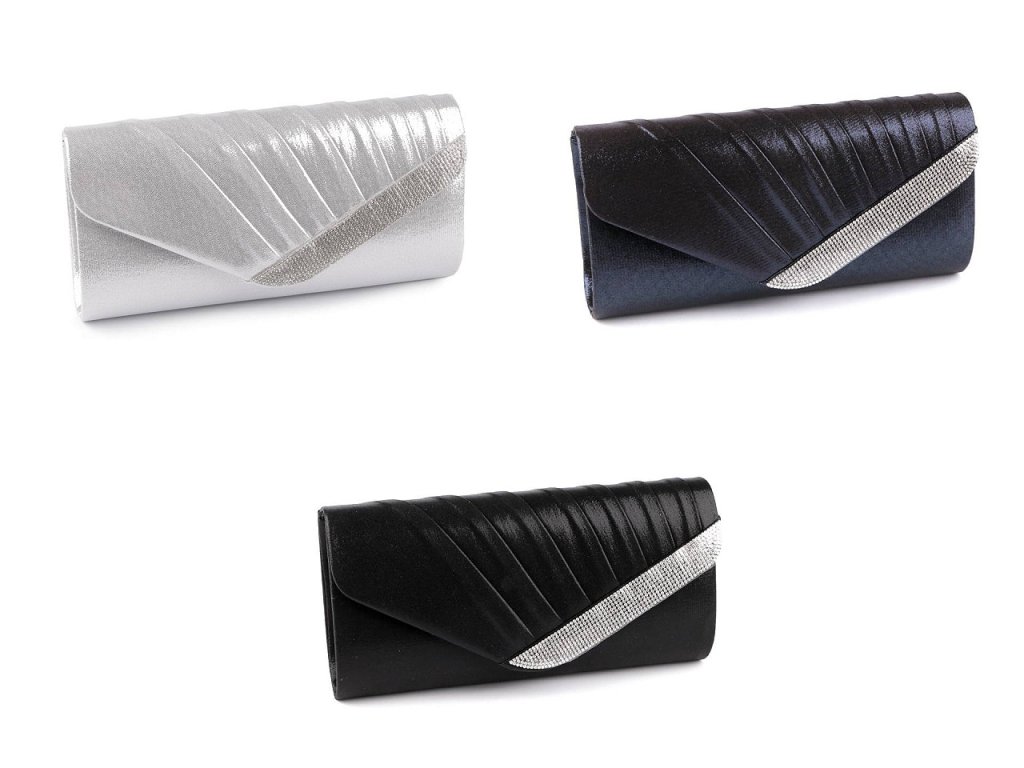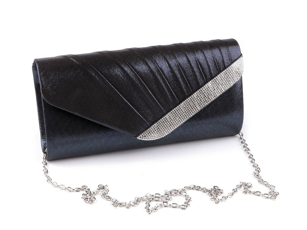 Psaníčko ozdobené broušenými kamínky je elegantním doplňkem na různé slavnostní události. Luxusní vzhled a třpyt této kabelky přitáhne pozornost širokého okolí. Psaníčko má textilní potah, na přední straně je nařasené. Je pevné, vyztužené, uvnitř má polyesterovou podšívku a malou kapsičku na drobnosti. Zapíná se na magnet. Ke kabelce patří odepínatelný řetízek. Psaníčko můžete nosit s řetízkem přes rameno nebo bez něj jen tak v ruce.- Rozměry (ŠxVxH): 24 x 12 x 6,5 cm